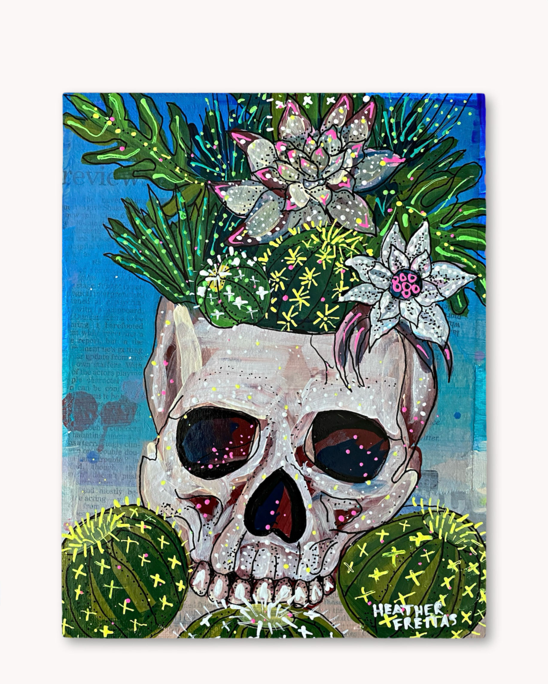 Delightfully dreamy and impossible to forget, these prints are like a soft hug from another world—each one wrapped in Heather Freitas’s signature style: bold, symbolic, and utterly enchanting. With over 1,800 original works sold and adored around the globe, her art has become a coveted escape for collectors and daydreamers alike.