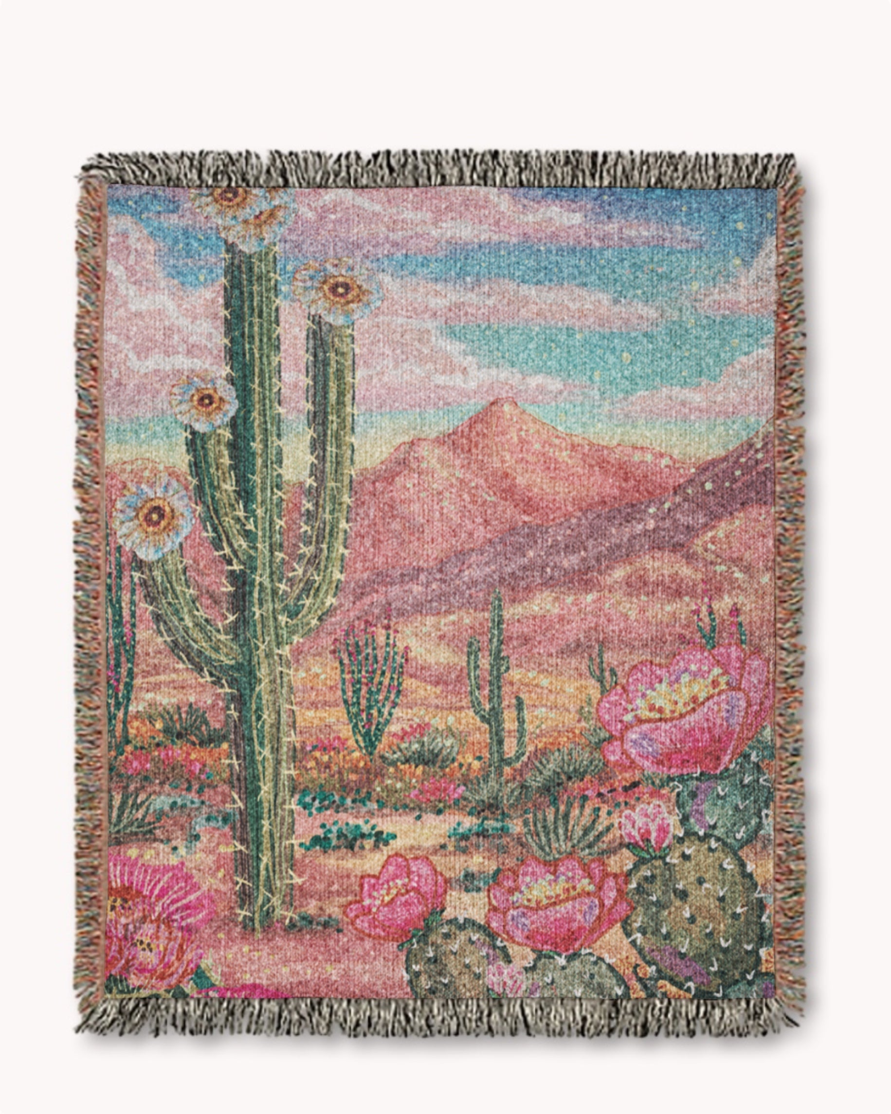 Woven with rich texture and timeless charm, this jacquard throw features original artwork by Heather Freitas, transformed into a keepsake meant to be lived with and loved. Whether folded at the foot of your bed, draped over a favorite chair, or hung as a tapestry, it adds a touch of nostalgia to your space—like something passed down, or discovered on a magical antique shop afternoon. A cozy companion for quiet days, storybook evenings, and slow, beautiful living.