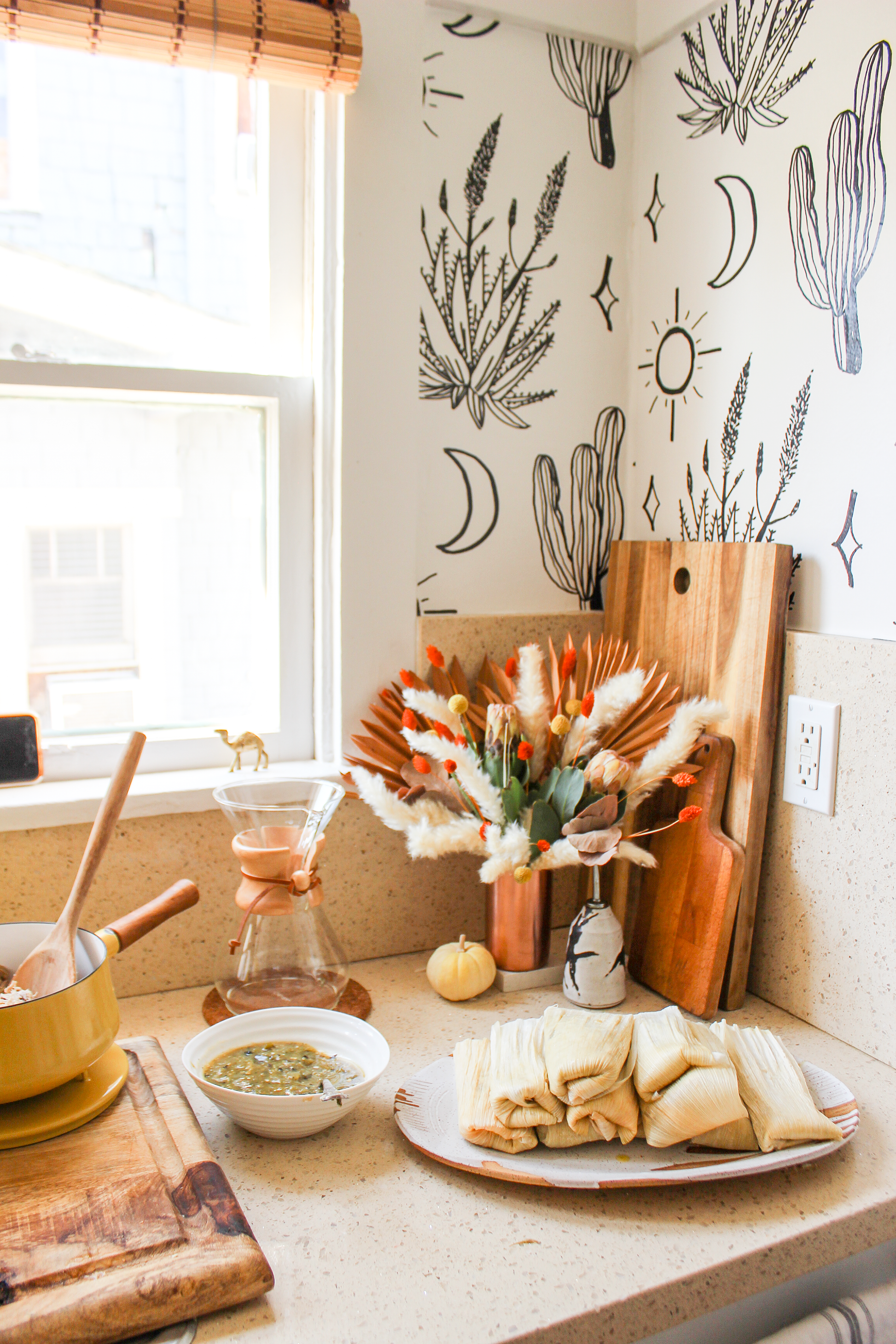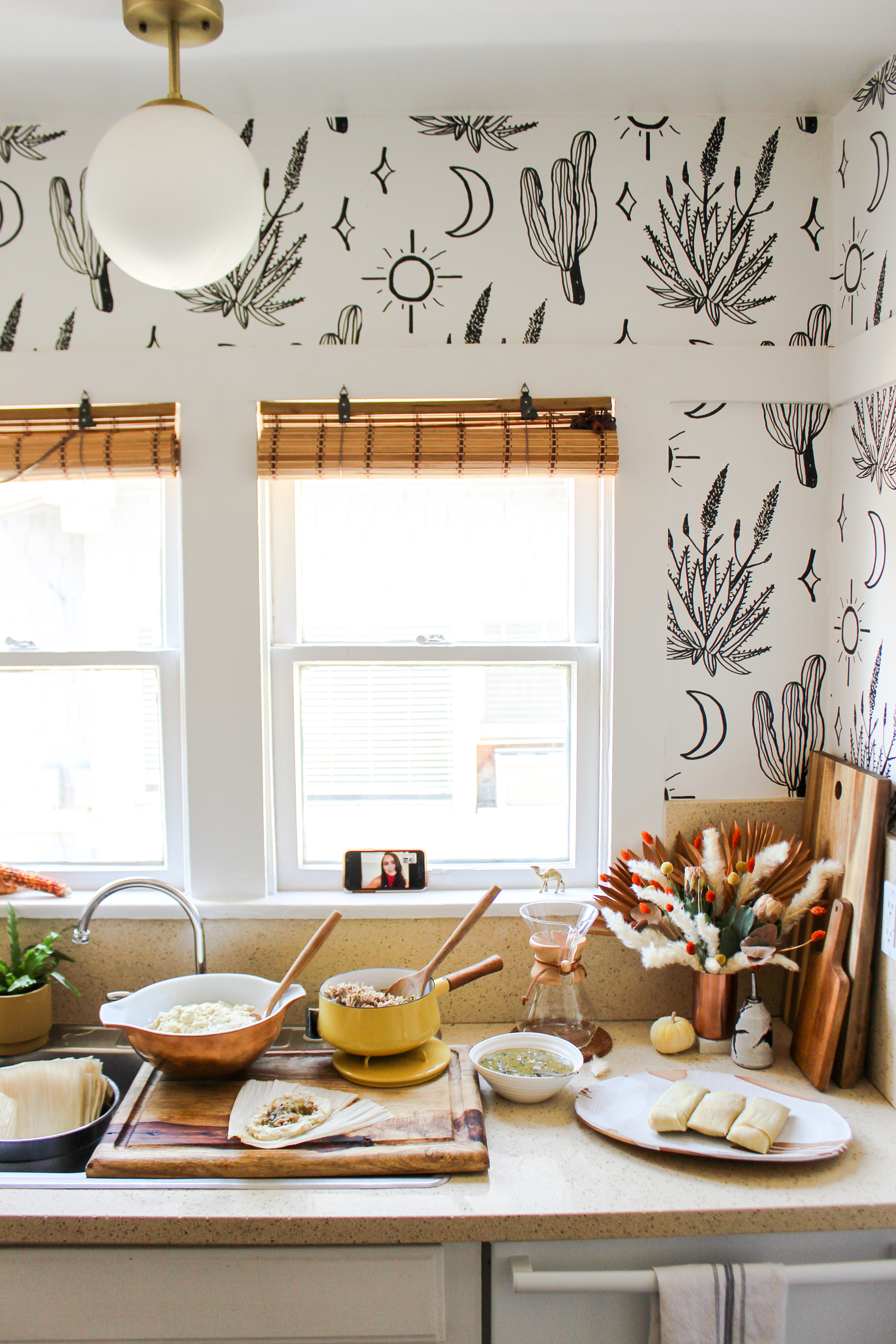 Add a touch of Western charm to your home with the Desert Sky wallpaper. Designed by Samantha Santana, the intricate patterns are inspired by the beauty of the desert landscape and sky. You can easily install it with both peel and stick vinyl and traditional pasted options. Best of all, it's completely removable!