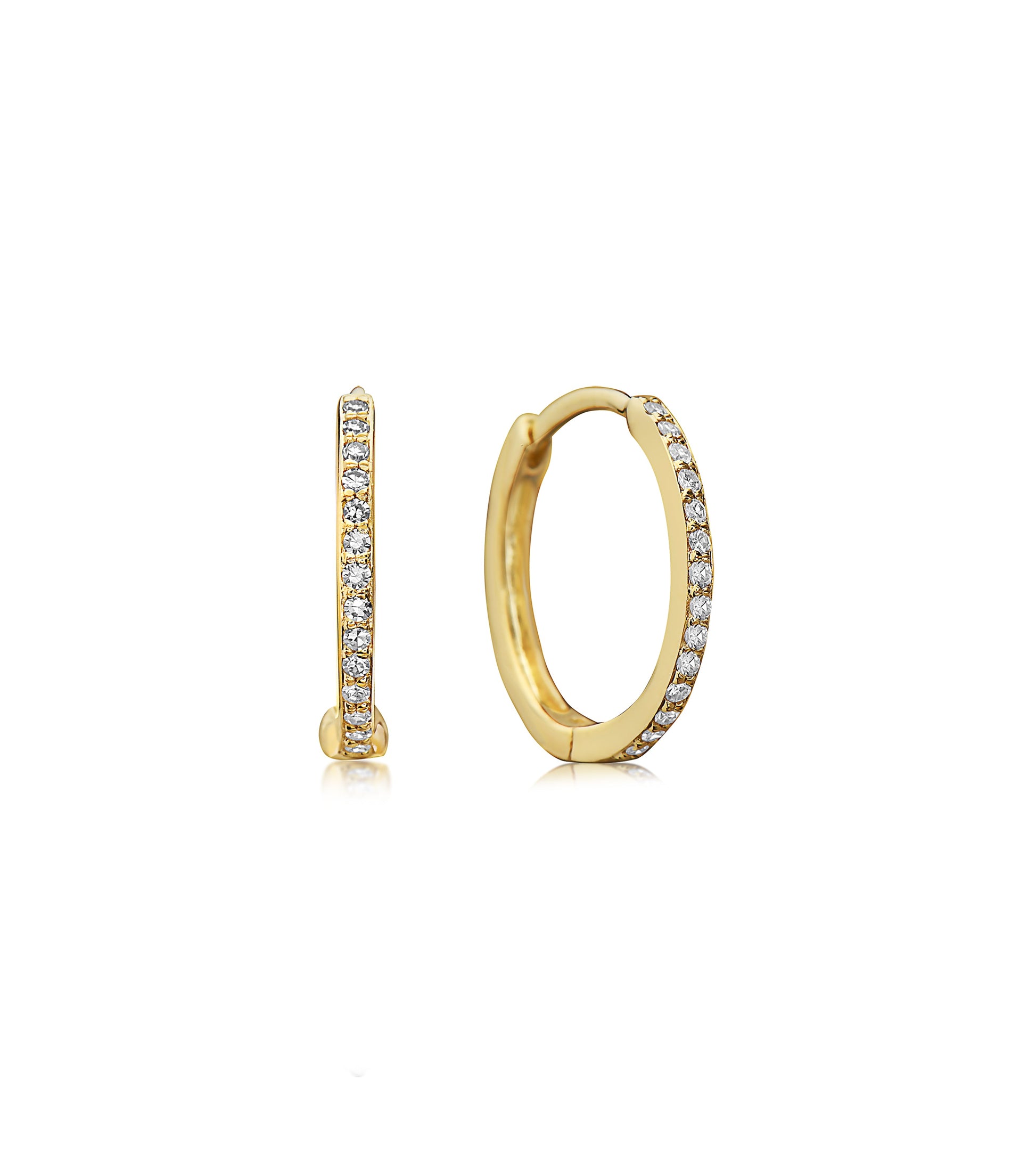 Fall in love with these sparkly diamond huggie hoop earrings crafted from 14k gold! At a diameter of 15mm, these earrings will add an elegant touch to any ensemble, and they're small enough to hug your earlobe for an undeniably glamorous look.