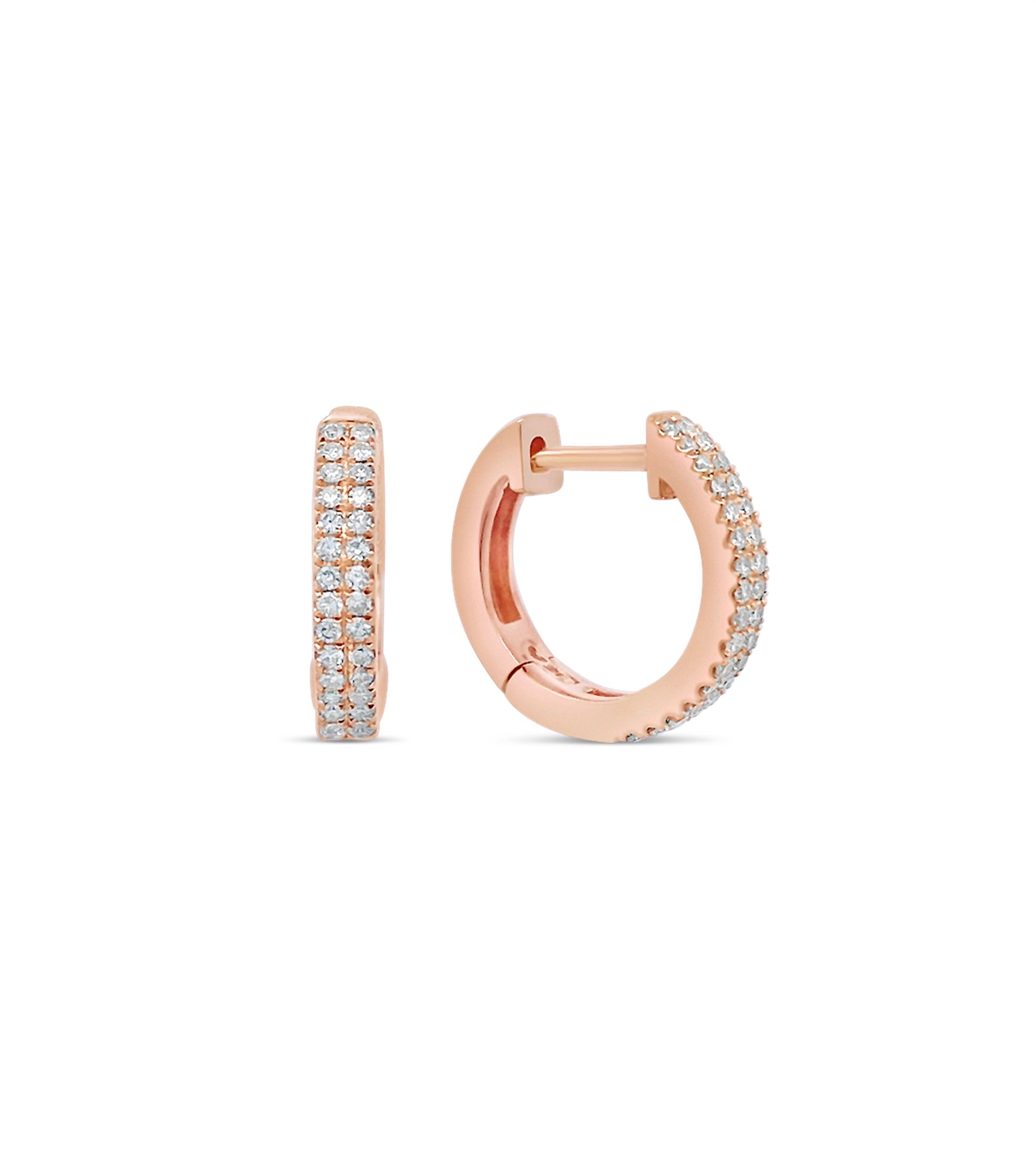 Luxuriate in the glamour of our 14k gold Diamond 2 Row Huggie Earring; featuring an exquisite pave diamond design set in a huggie earring for a truly dazzling look. Our Diamond 2 Row Huggie Earring is the perfect accessory to take any ensemble to the next level of luxury.