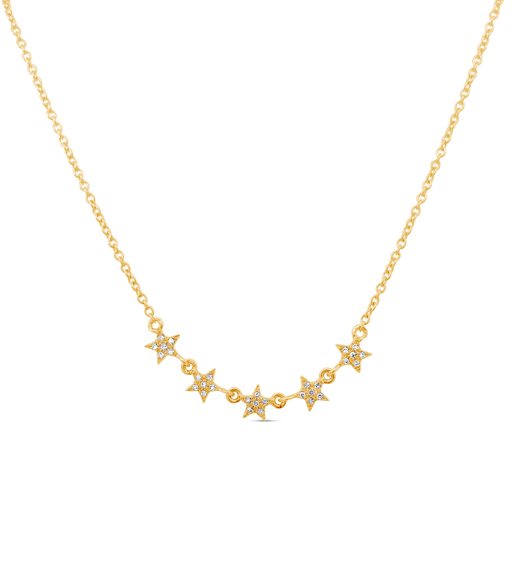 Get sparkly and sophisticated with this stunning Diamond 5 Star Necklace. Crafted in 14k gold, it features a pave diamond star pendant with an adjustable 18-inch chain to fit any neckline. Shine your brightest with this elegant necklace!