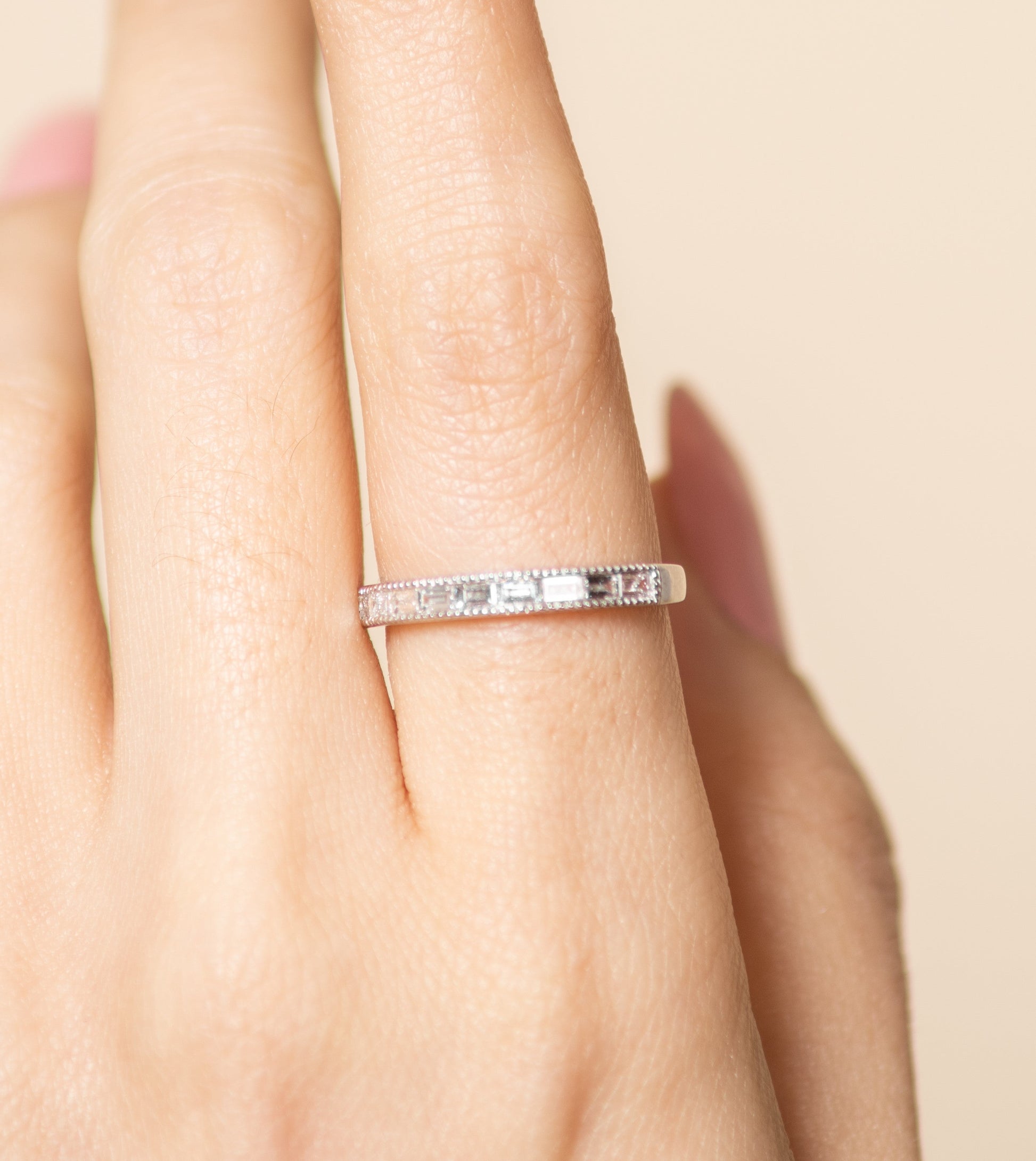 Diamond Baguette Milgrain Channel Set Band