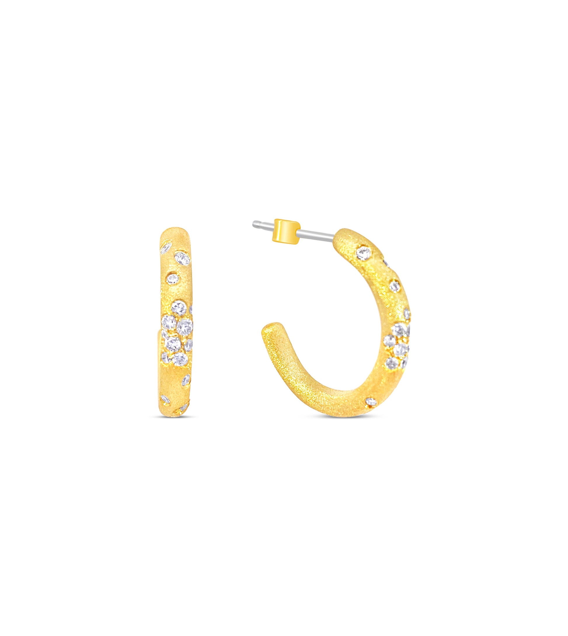 Adorn yourself with the beauty and brilliance of these Diamond Celestial J Hoop Earrings. Crafted from 14k gold with a satin finish, these stunning earrings feature scatter diamonds for a truly eye-catching look. With a classic tube hoop design, these earrings bring an elegant touch to any outfit. Shine like a celestial star with the Diamond Celestial J Hoop Earrings.