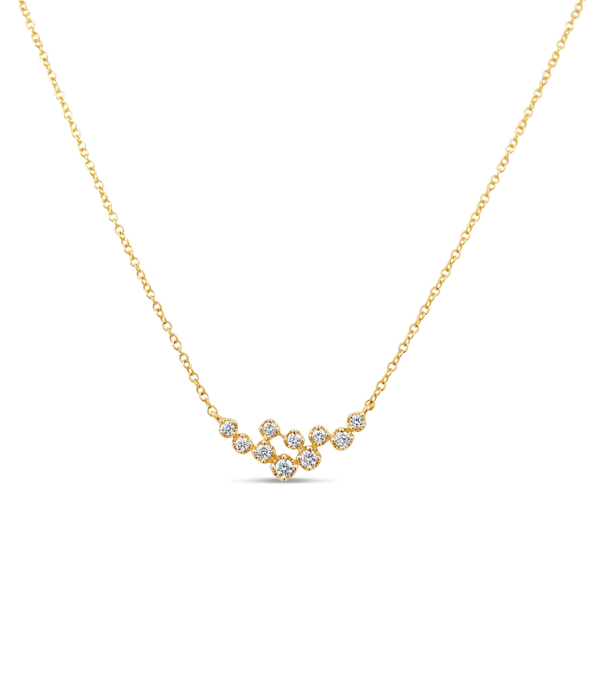 This dazzling Diamond Cluster Necklace is crafted from 14k gold and features a delicate diamond cluster pendant that will sparkle with each movement. The 18-inch chain is adjustable to 16 inches, making this perfect for any occasion. Treat yourself or a loved one to this timeless beauty!