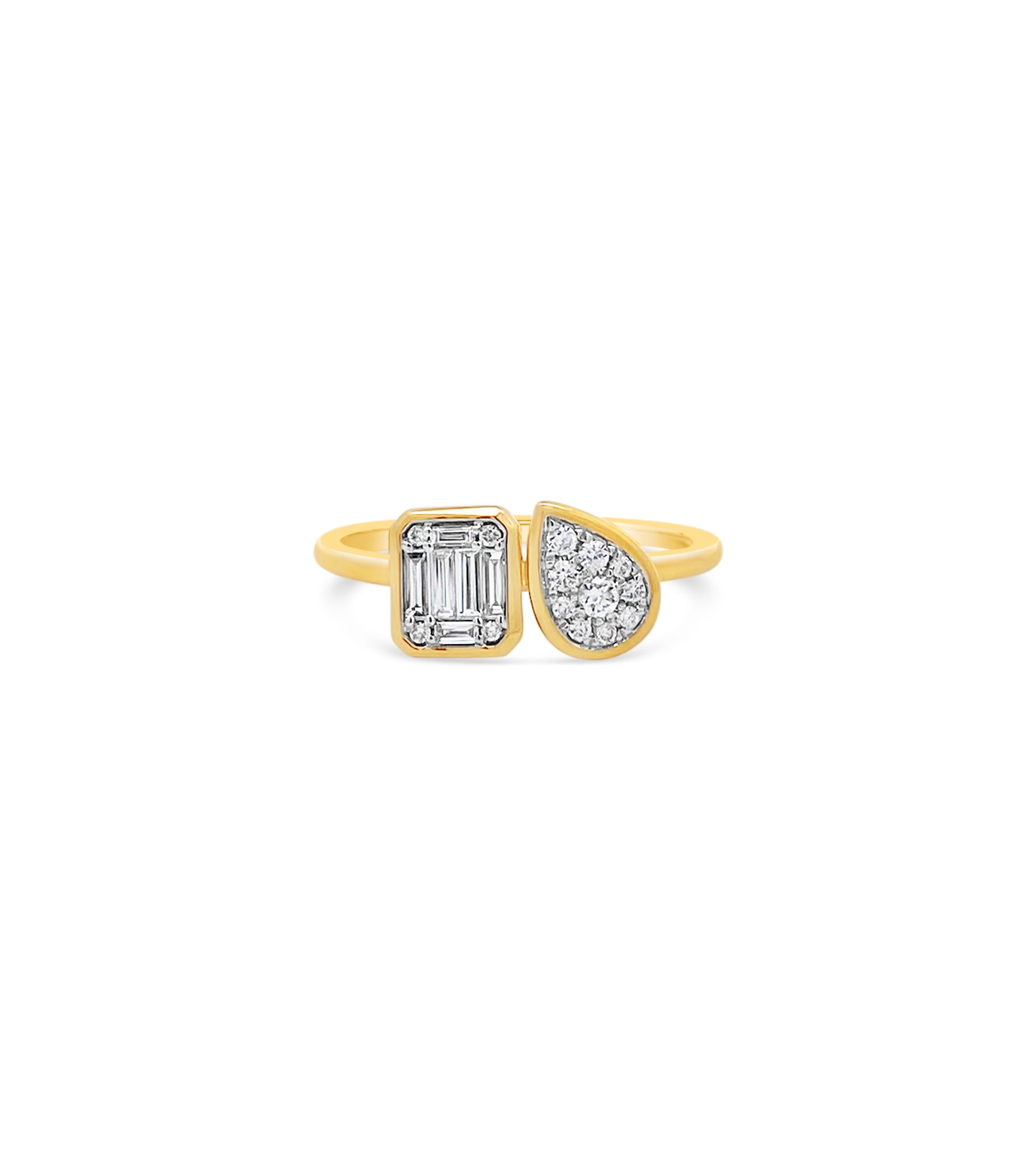 Adorn yourself with this timeless 14k Gold Diamond Cluster Toi et Moi Ring. It features an emerald cut and pear shape diamond cluster, perfect for adding that extra sparkle to any look. Elevate any outfit with this captivating ring.