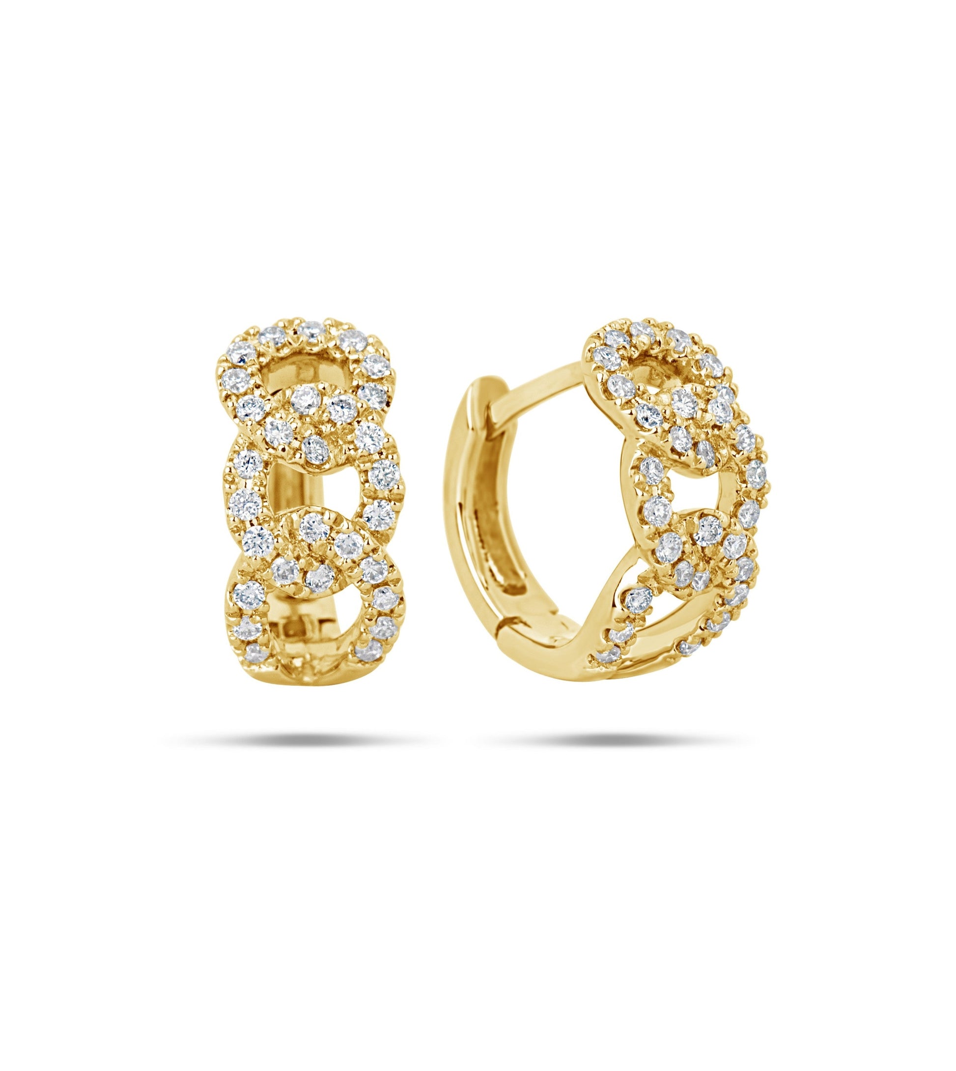 This Diamond Link Huggie earring is the perfect way to show off your style. Crafted in 14k gold with pave diamond and cuban link details, it radiates luxury and elegance. Elevate your look with a timeless piece that celebrates your unique beauty.