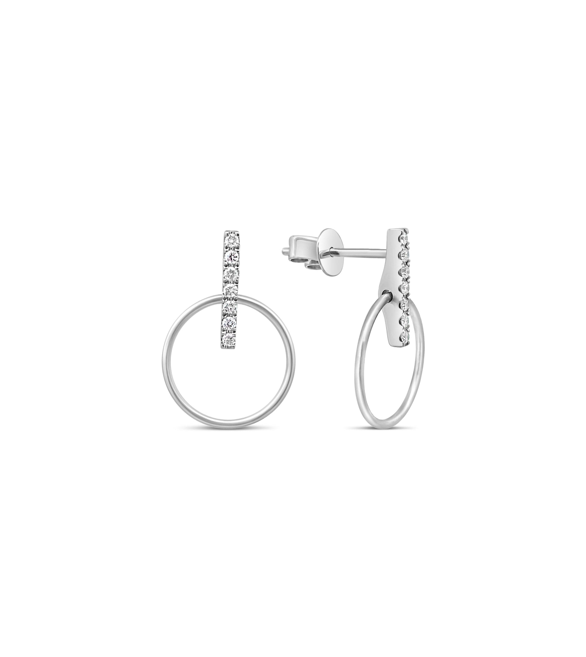 Make a statement with the Diamond Door Knock Earring. Crafted with a 14k gold satin finish, the earring features a diamond bar and gold circle to create a timeless yet contemporary look. Perfect for any occasion!