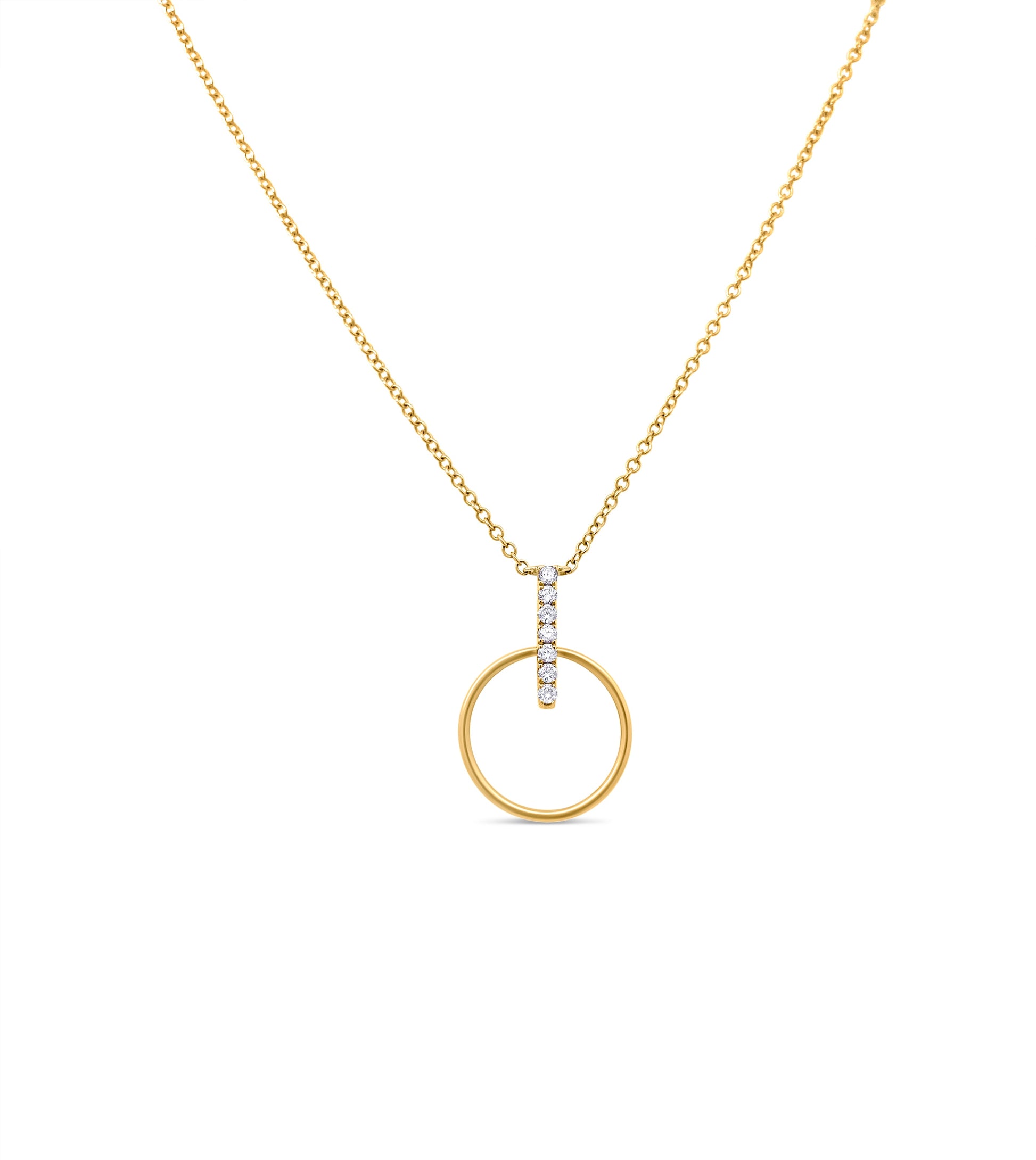 Make a statement with the Diamond Door Knock Necklace. Crafted with a 14k gold satin finish, the earring features a diamond bar and gold circle to create a timeless yet contemporary look. Perfect for any occasion!