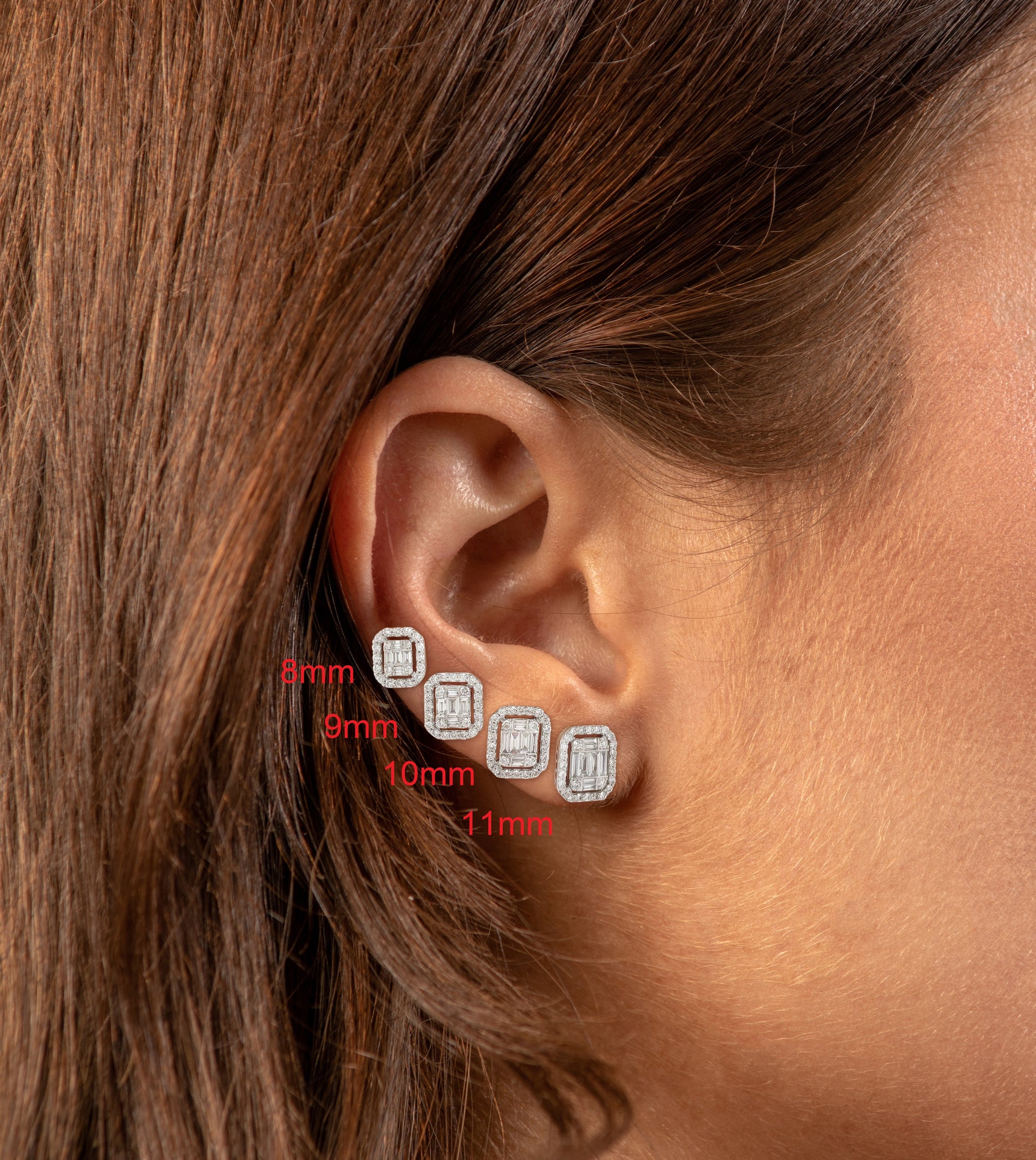Diamond Emerald Cut Cluster Halo Stud Earrings