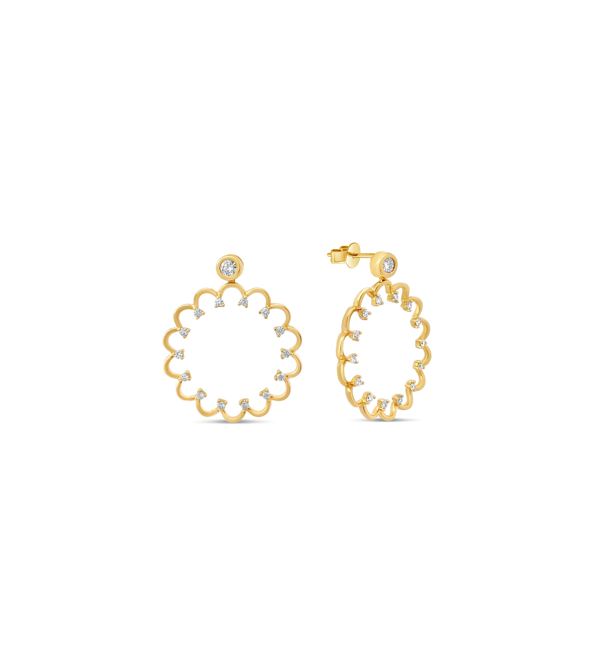 Delight your senses with these exquisite diamond flower silhouette earrings crafted with 14k gold. Enjoy the unique sparkle of these elegant and stylish earrings, and add a touch of luxury to your outfit. Make a statement with these beautiful earrings!