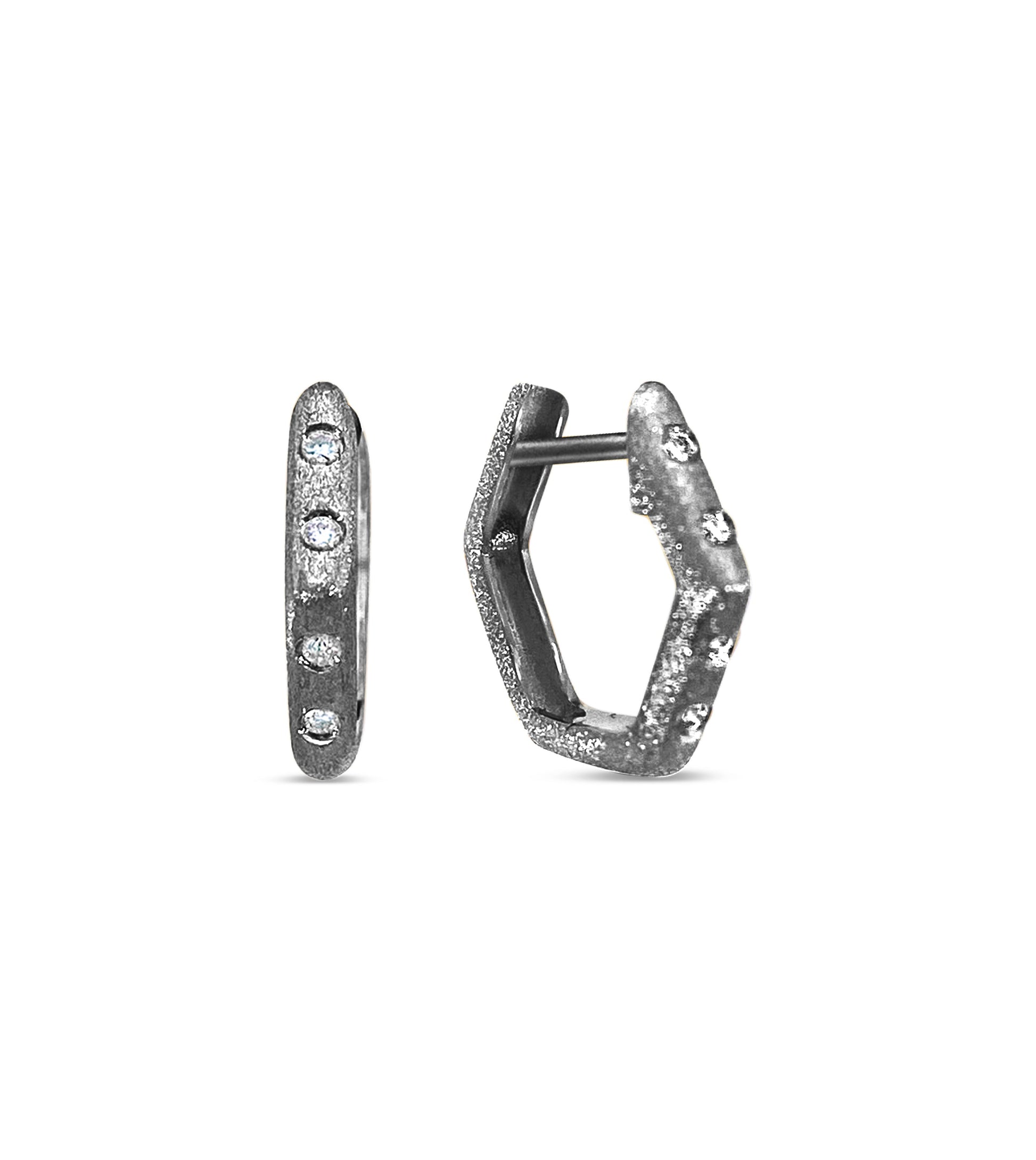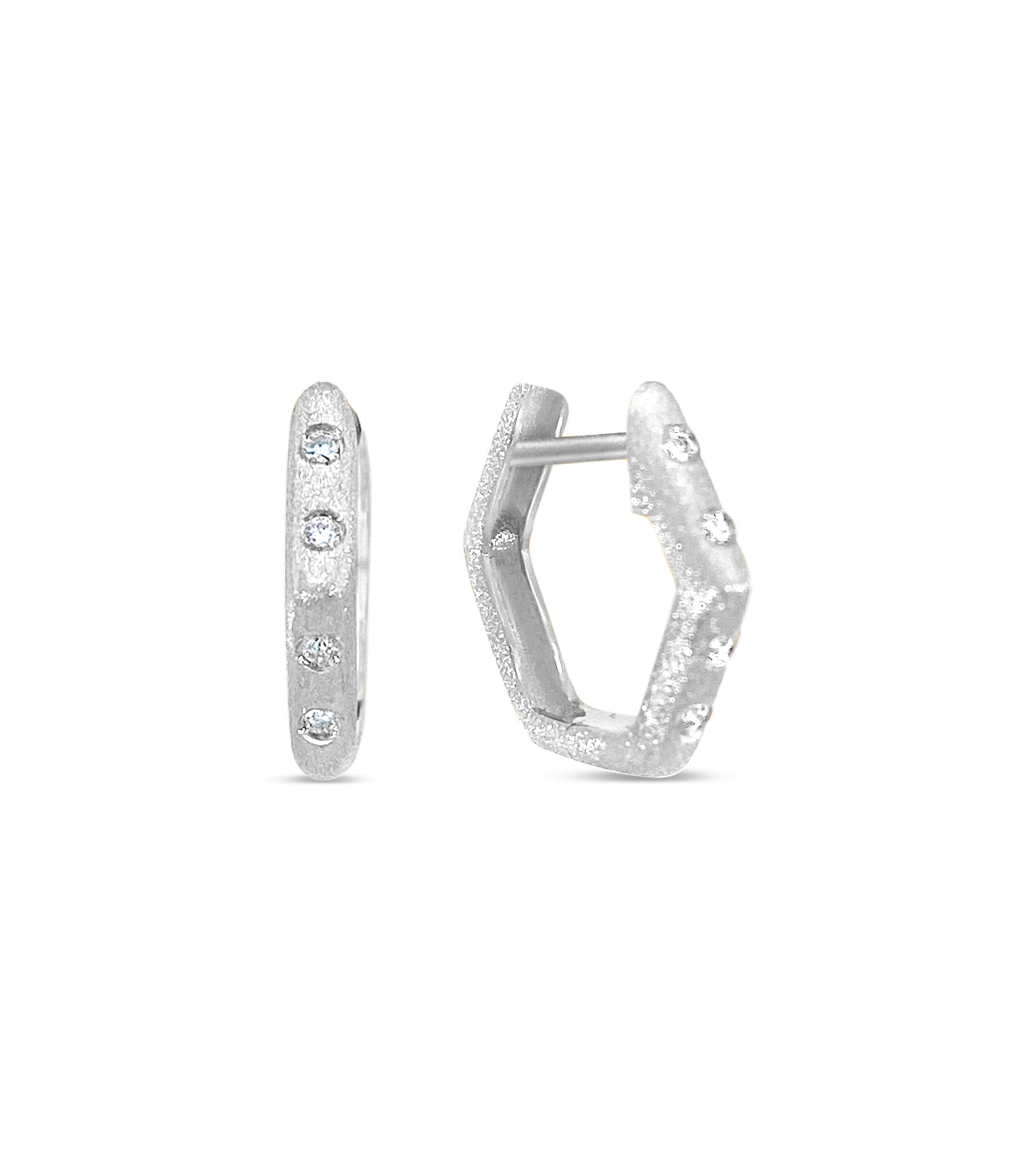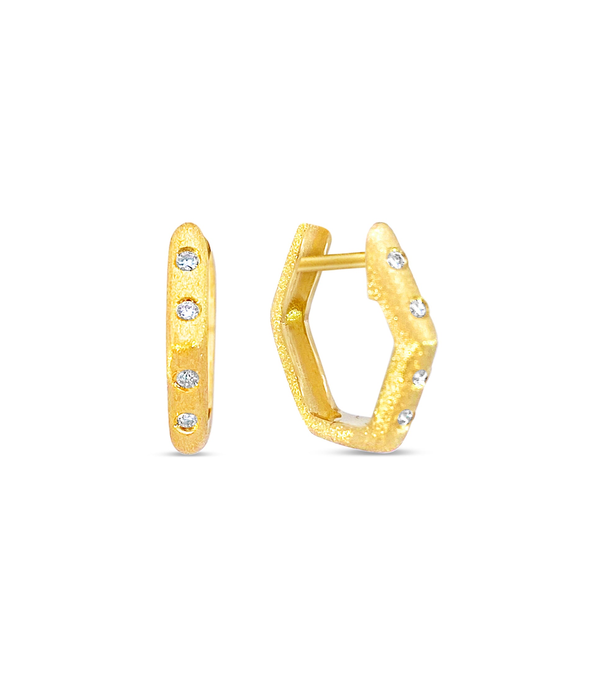 Add a bit of sparkle to your look with this stately 14K gold brushed finish Diamond Hexagon Flush Huggie Earring. Each earring is delicately set with precious flush-set diamonds that will turn heads and make you shine. Show your style with a touch of diamond luxury.