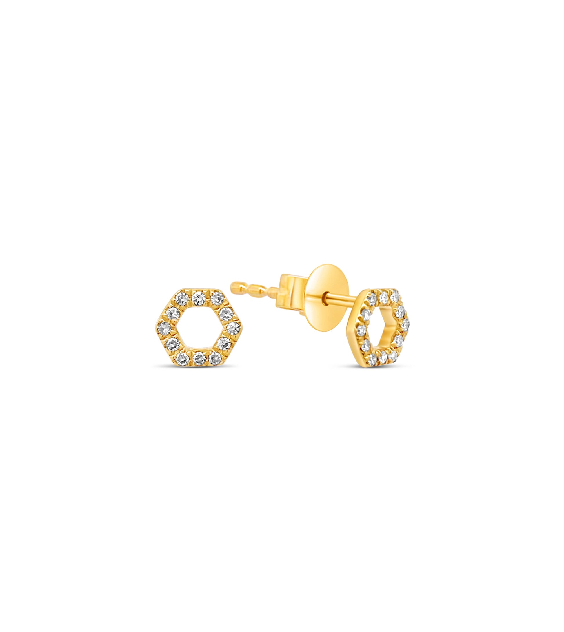 Capture your unique style with these dazzling 14k gold diamond hexagon stud earrings. Each stud is crafted with a pave setting of diamonds that sparkles with every turn of your head. Exude elegance, sophistication, and beauty with these unique hexagon-shaped earrings.