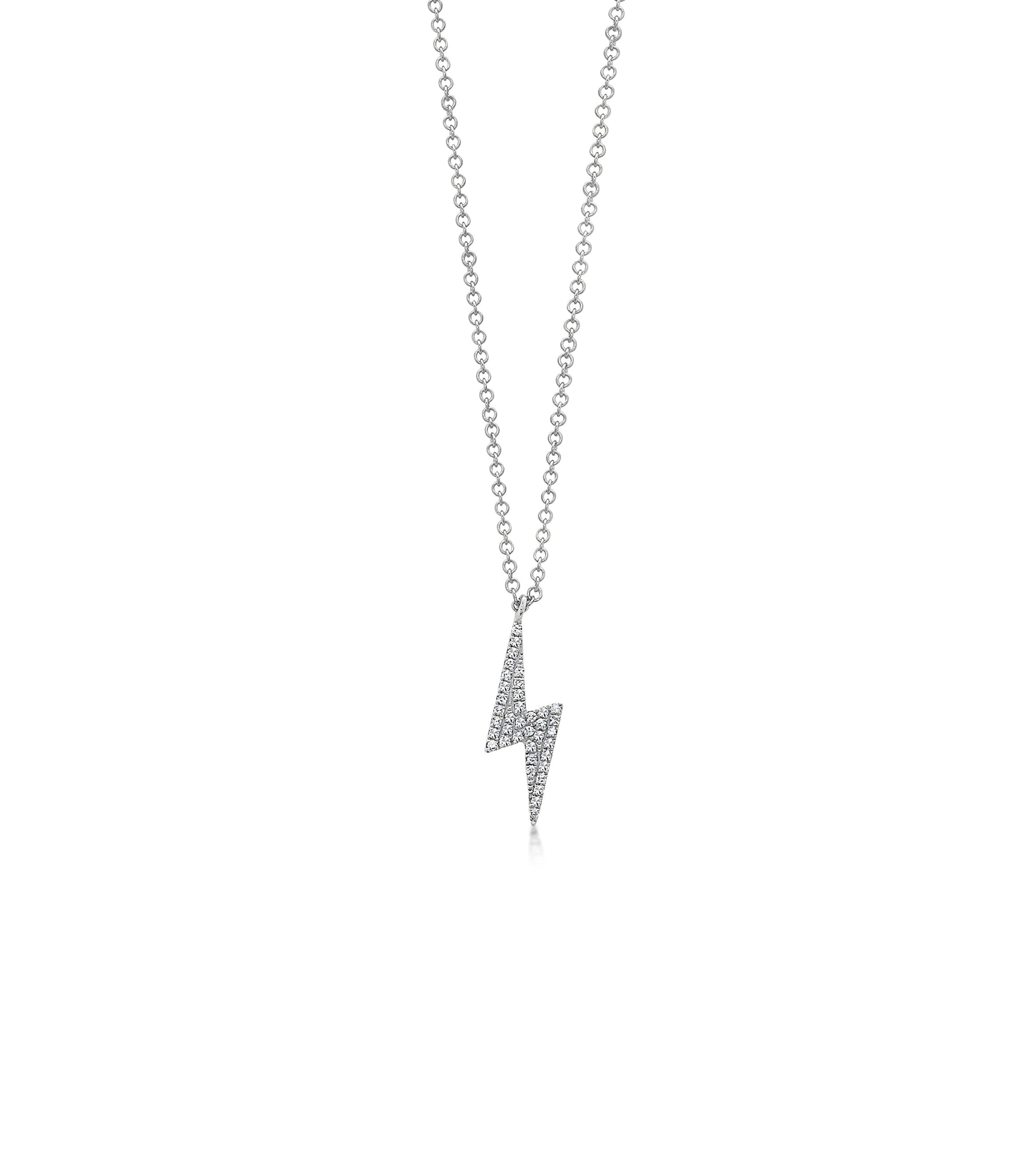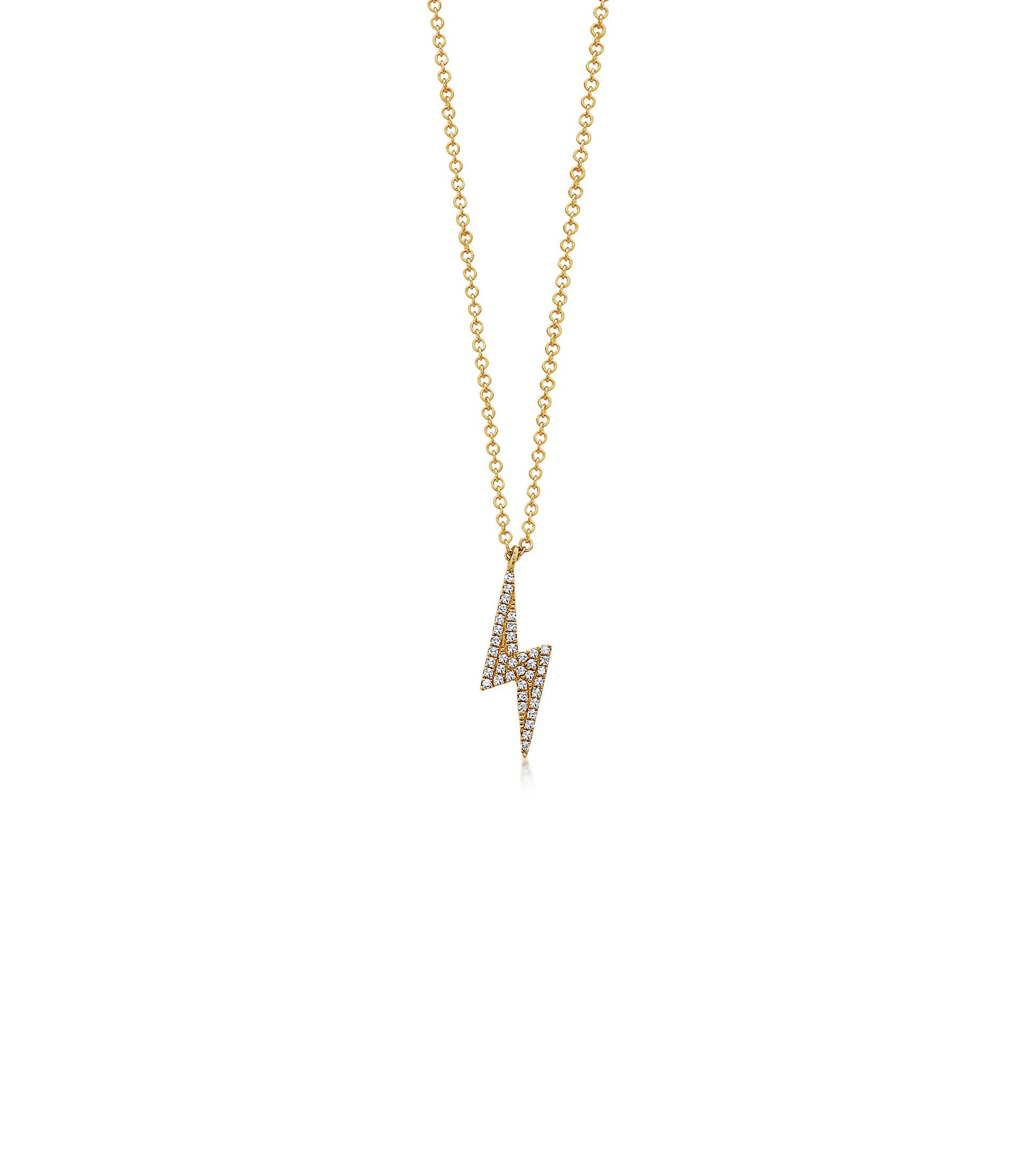 Show off a stunning symbol of power with this 14k Gold Diamond Lightning Bolt Necklace. The exquisite pendant contains sparkling pave diamond accents and hangs from an18 inch chain that can be adjusted to a chic choker. Make a bold statement wherever you go!