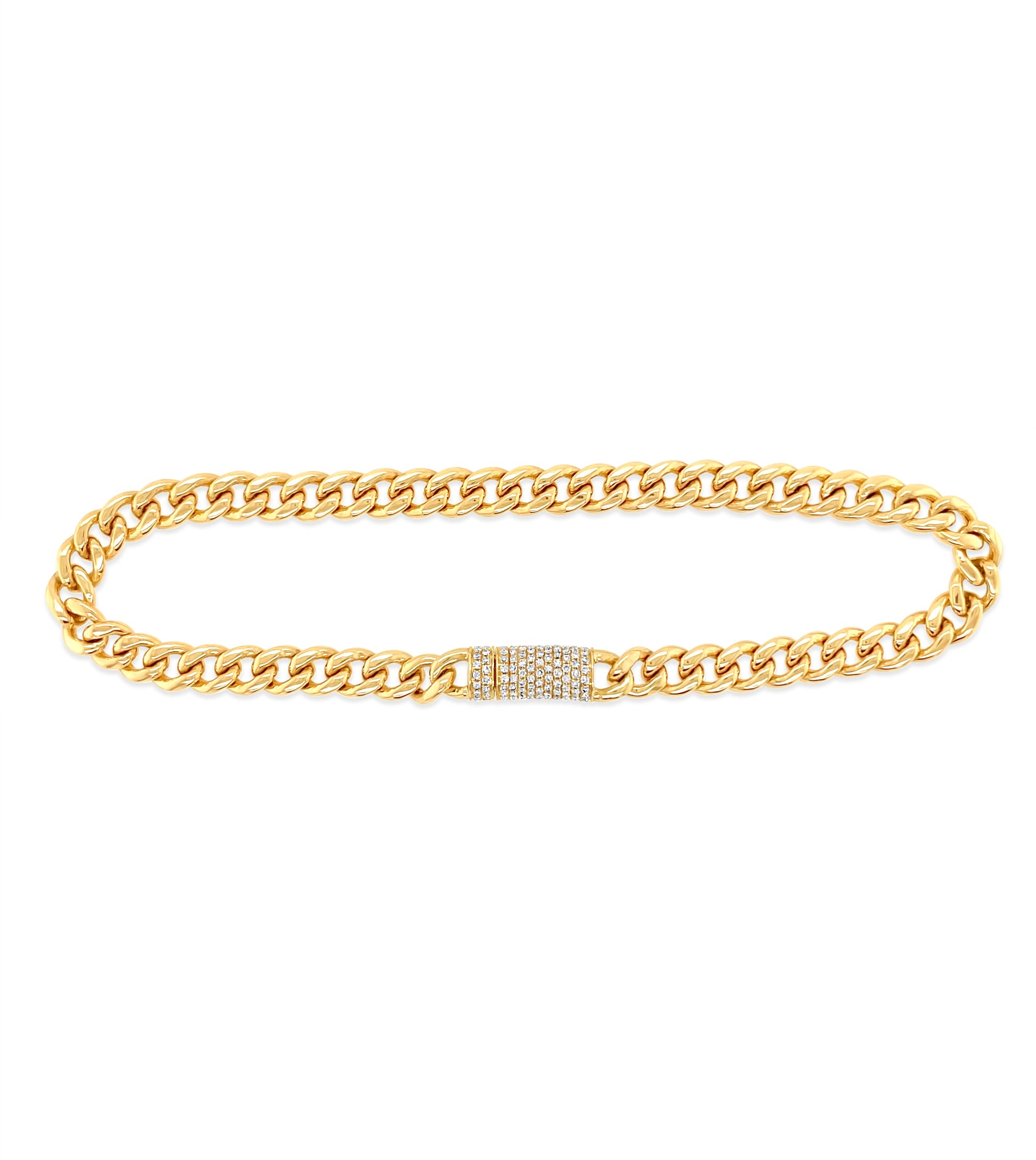 Bling up your look with this beautiful diamond lock Cuban chain bracelet. Crafted from 14k yellow gold, this stylish pave diamond lock bracelet is sure to draw attention. With its eye-catching design, experience a trendsetting look that will make you stand out from the crowd!