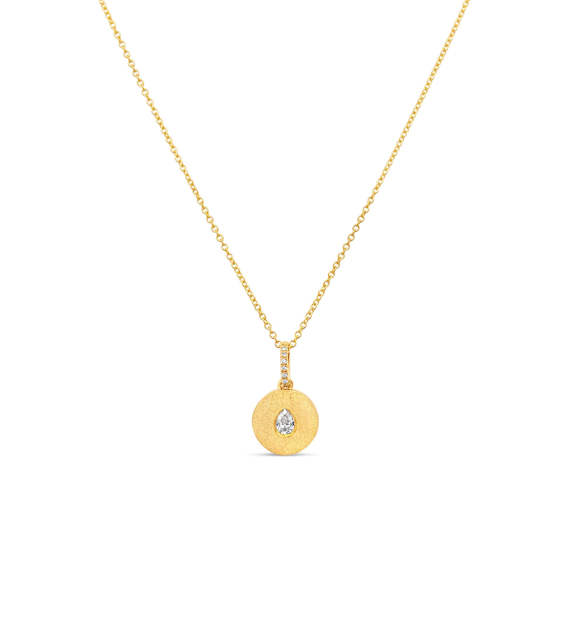 Diamond Pear Flush Disc Necklace