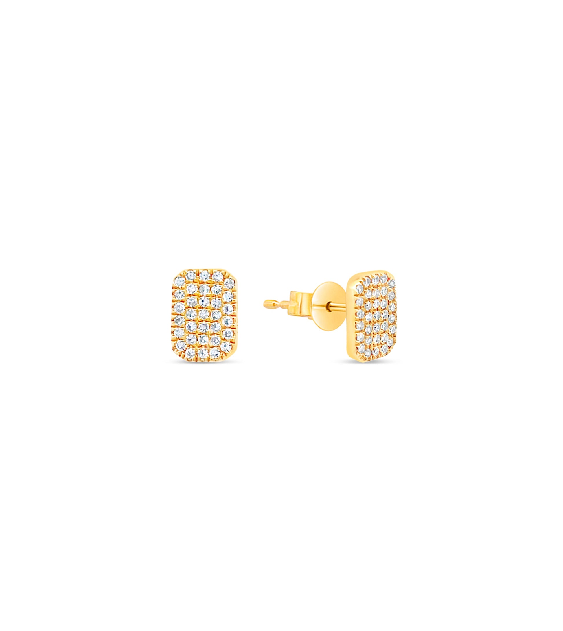 Add a touch of sparkle to your look with these stunning diamond rectangle stud earrings! Crafted in 14k gold, these earrings feature a mesmerizing pave diamond setting and emerald cut shape. Make a stylish statement with these exquisite earrings!