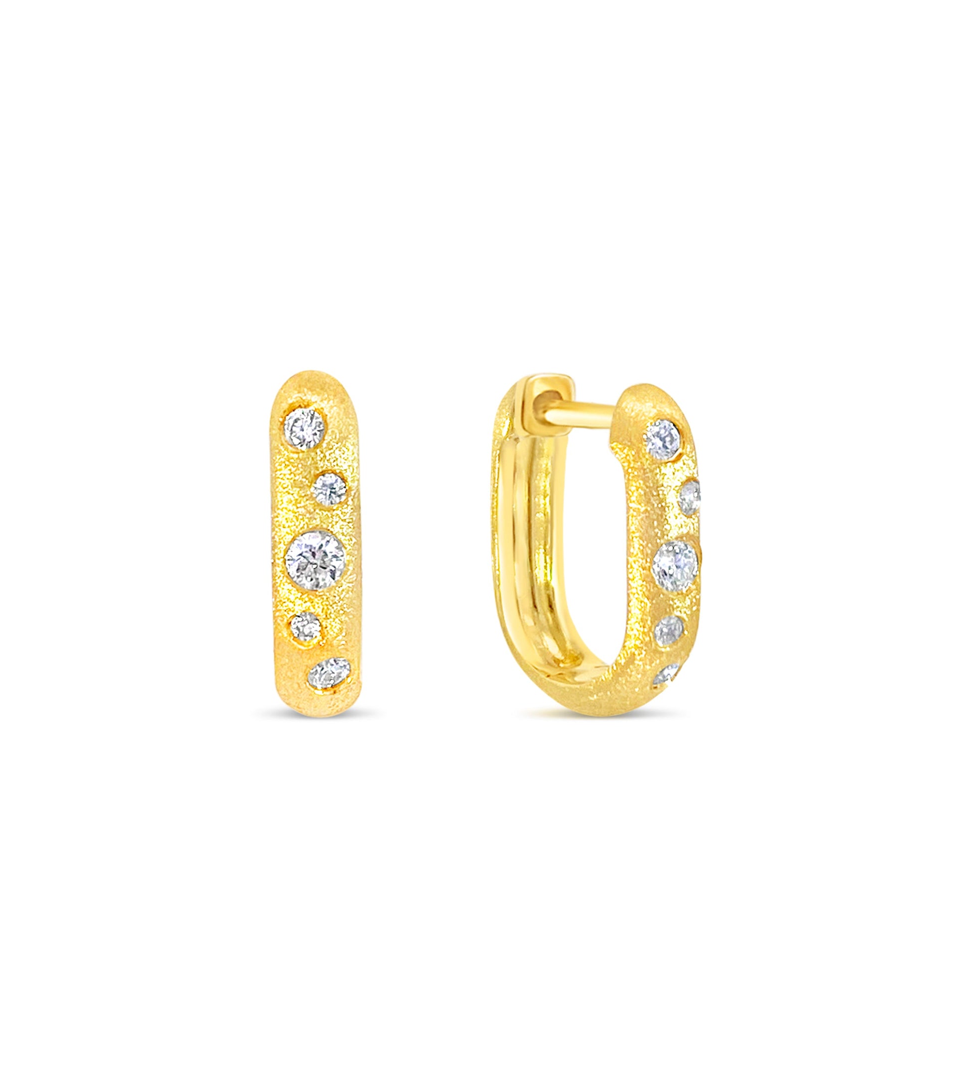 A perfect addition to any outfit, the Diamond Scatter Huggie Earring is a stunning choice. Crafted from 14k gold with a brushed finish and featuring an eye-catching scatter of dazzling diamonds, these hoop earrings will sparkle with every move. Treat yourself to something special!