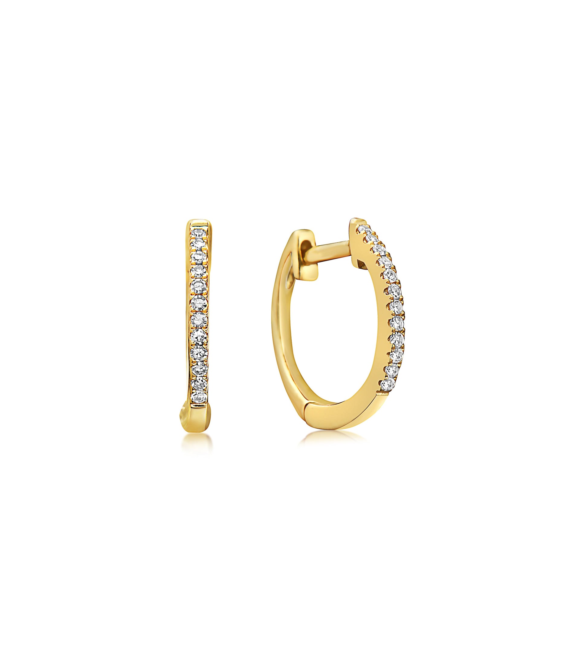 Show off your sparkling beauty with these delightful Diamond Signature Huggie Hoop Earrings! Crafted with stunning 14k gold, these earrings add a hint of sophistication to your look. With a dainty design, you can enjoy these breathtaking earrings all day long in absolute comfort.