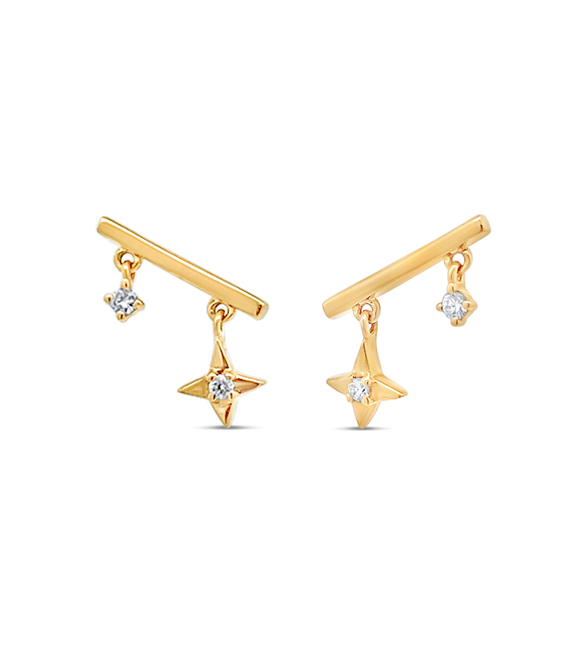 These Diamond Star Bar Earrings provide captivating sparkle with their 14k gold and pave diamond star bar charm stud design. Accentuate any outfit with these elegant earrings that will make you shine day and night.