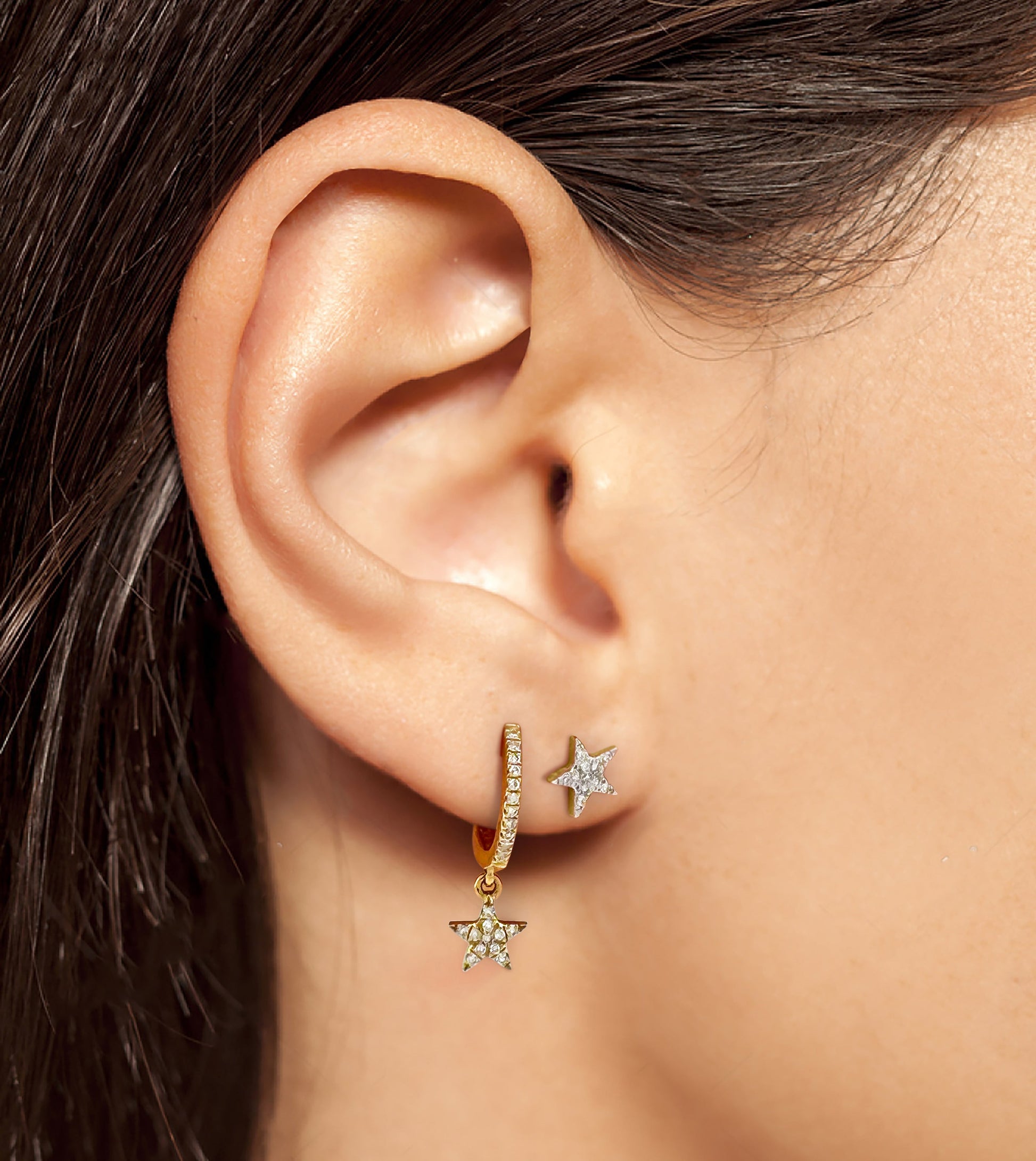Achieve the star look with these stunning Diamond Star Stud Earrings! Crafted from 14k gold and set with pave diamonds, these beautiful stud earrings bring an extra twinkle to your look. Show off your star power!