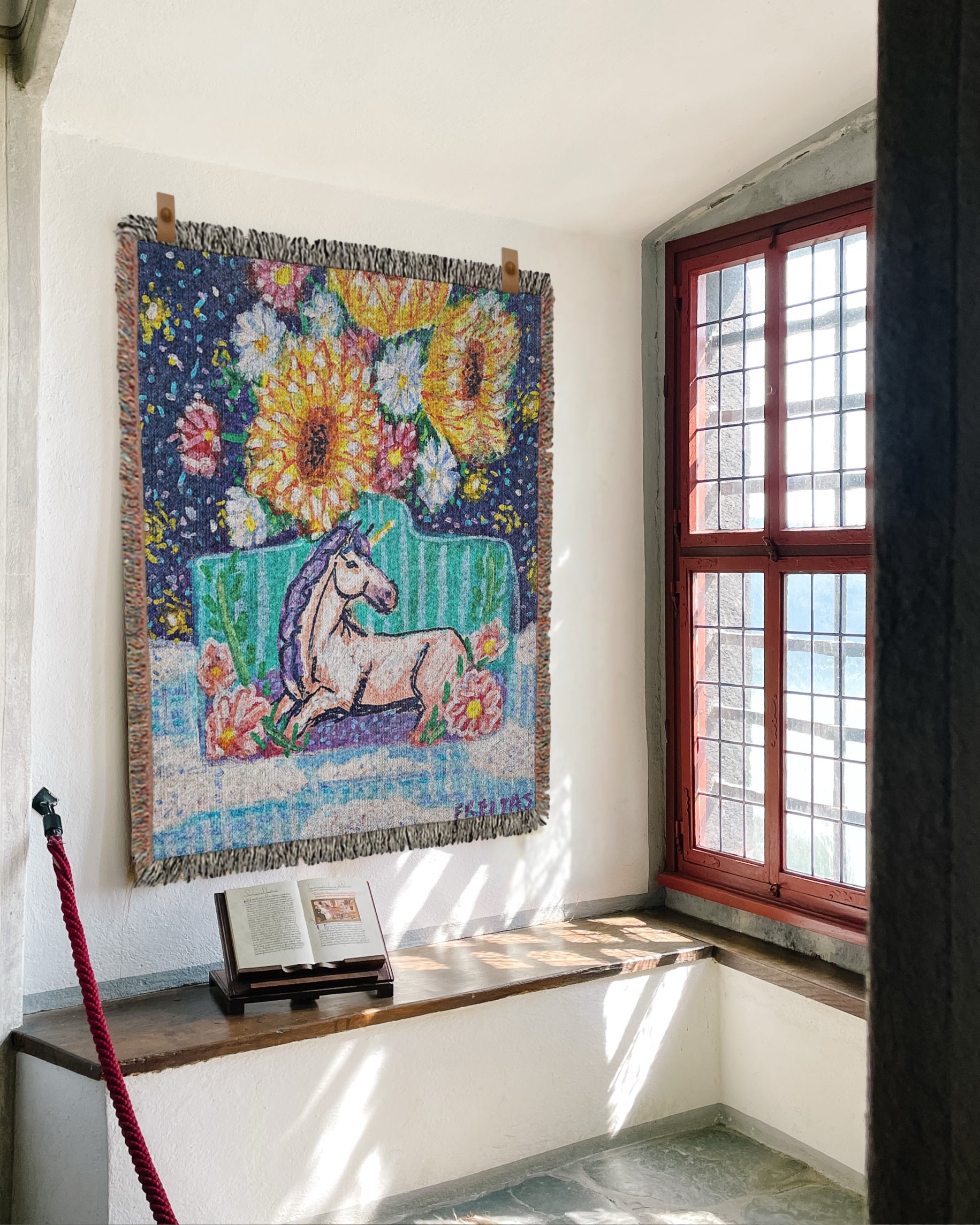 Woven with rich texture and timeless charm, this jacquard throw features original artwork by Heather Freitas, transformed into a keepsake meant to be lived with and loved. Whether folded at the foot of your bed, draped over a favorite chair, or hung as a tapestry, it adds a touch of nostalgia to your space—like something passed down, or discovered on a magical antique shop afternoon. A cozy companion for quiet days, storybook evenings, and slow, beautiful living.