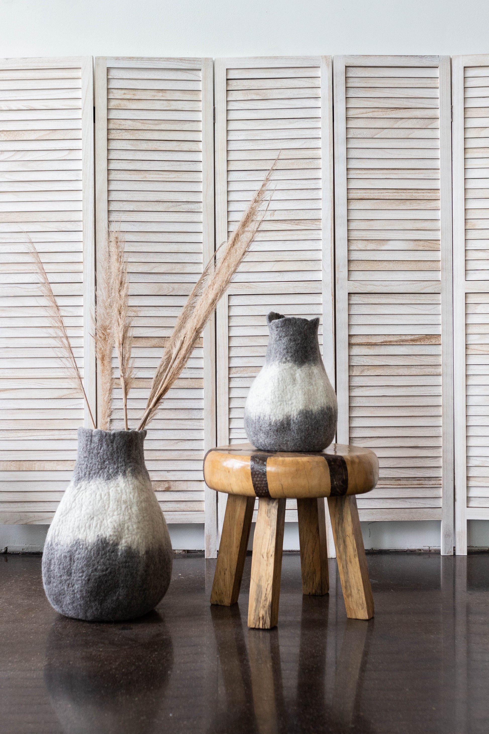 Add a unique touch of style to any part of your home with these unique, contemporary gourd baskets. The simple pattern allows the baskets to melt into any space with ease, making them a perfect addition to any space. Each basket is hand felted using 100% Karakul wool, one of the rarest types of wool in the world.