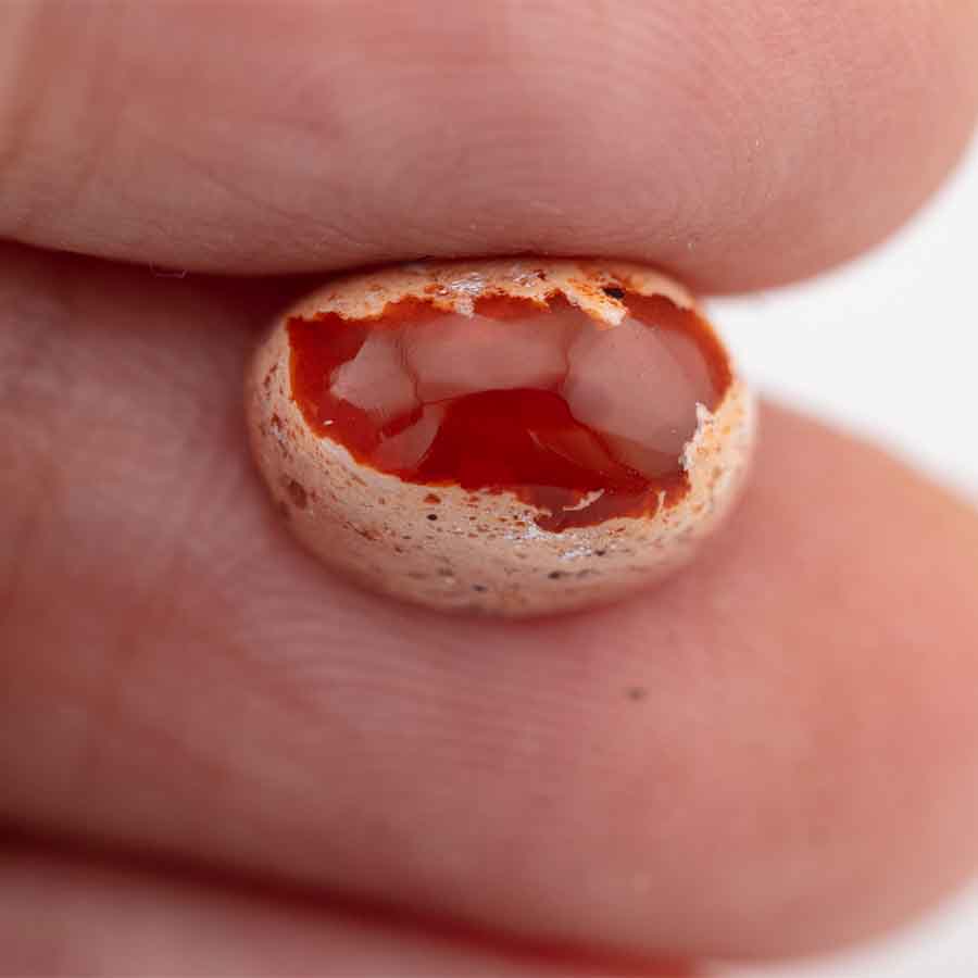 Egg-shaped Mexican Fire Opal fully surrounded structure
