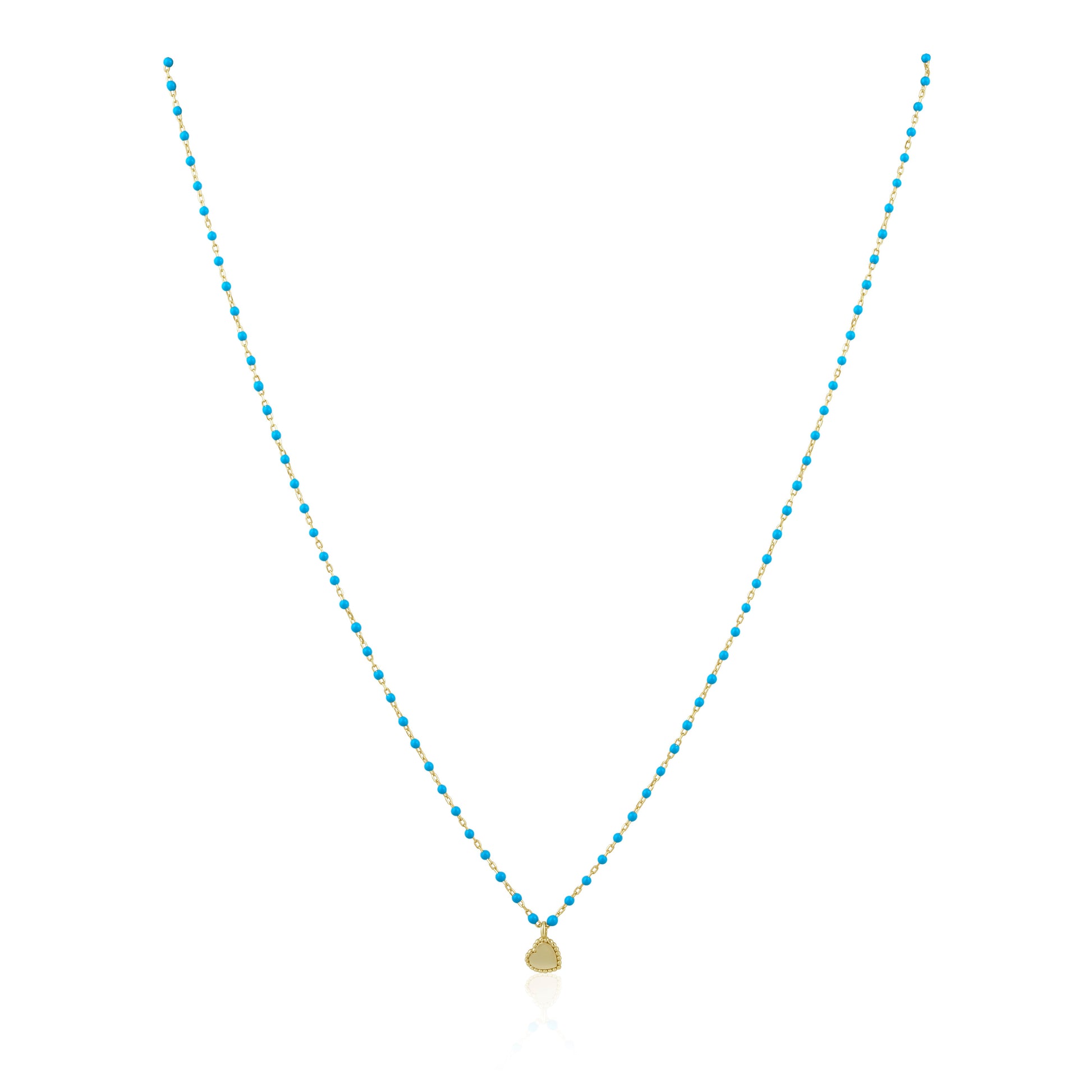 Add some heart to your style with our Elsa Mini Heart Necklace in turquoise. This beaded necklace is a playful and unique addition to any outfit, making it perfect for those who don't take themselves too seriously. Go ahead, show off your fun side!
