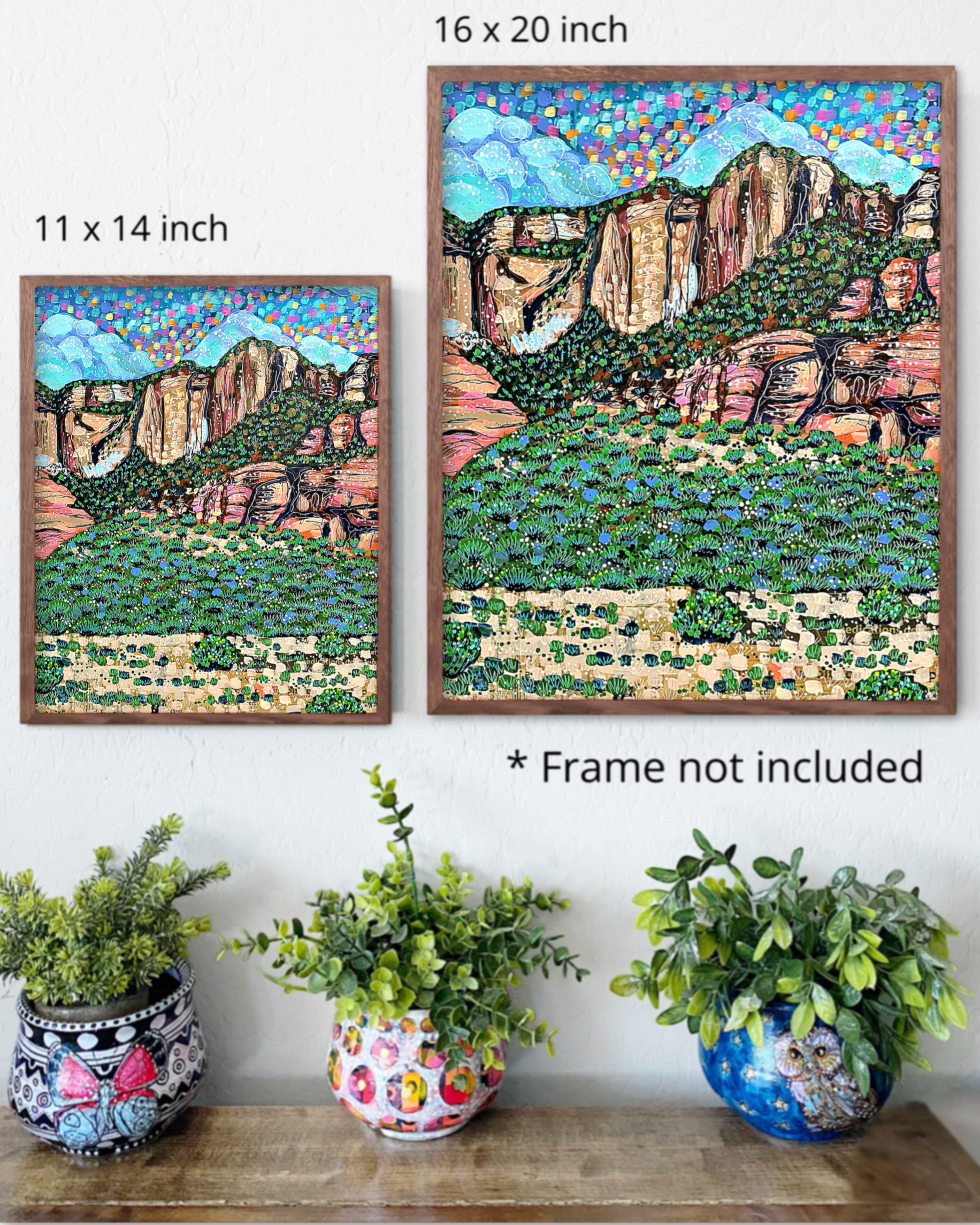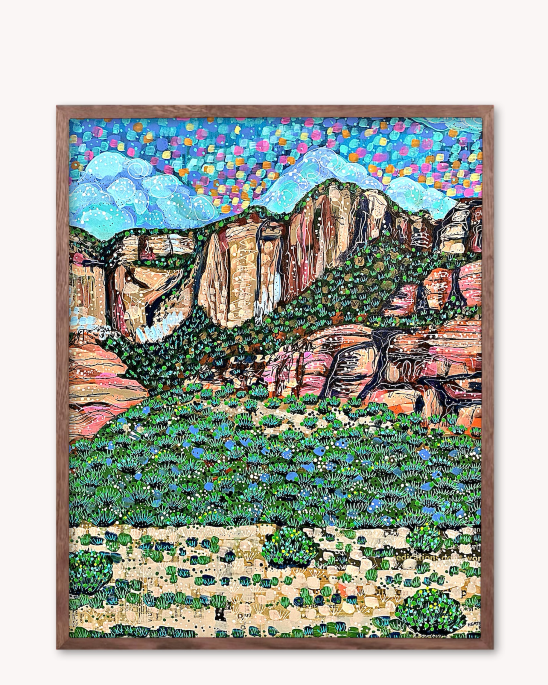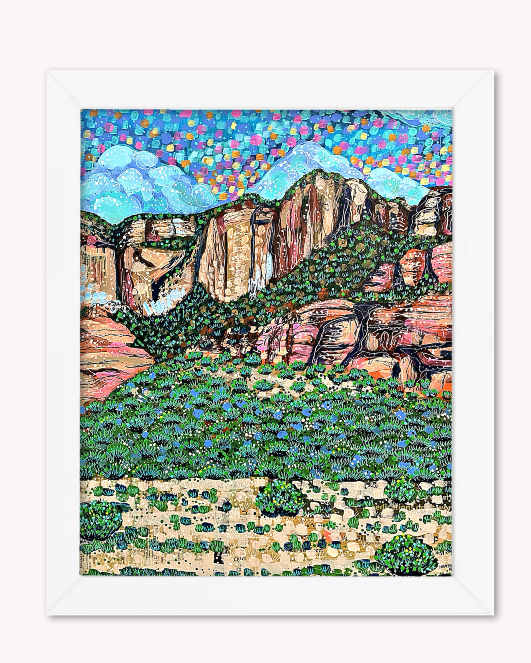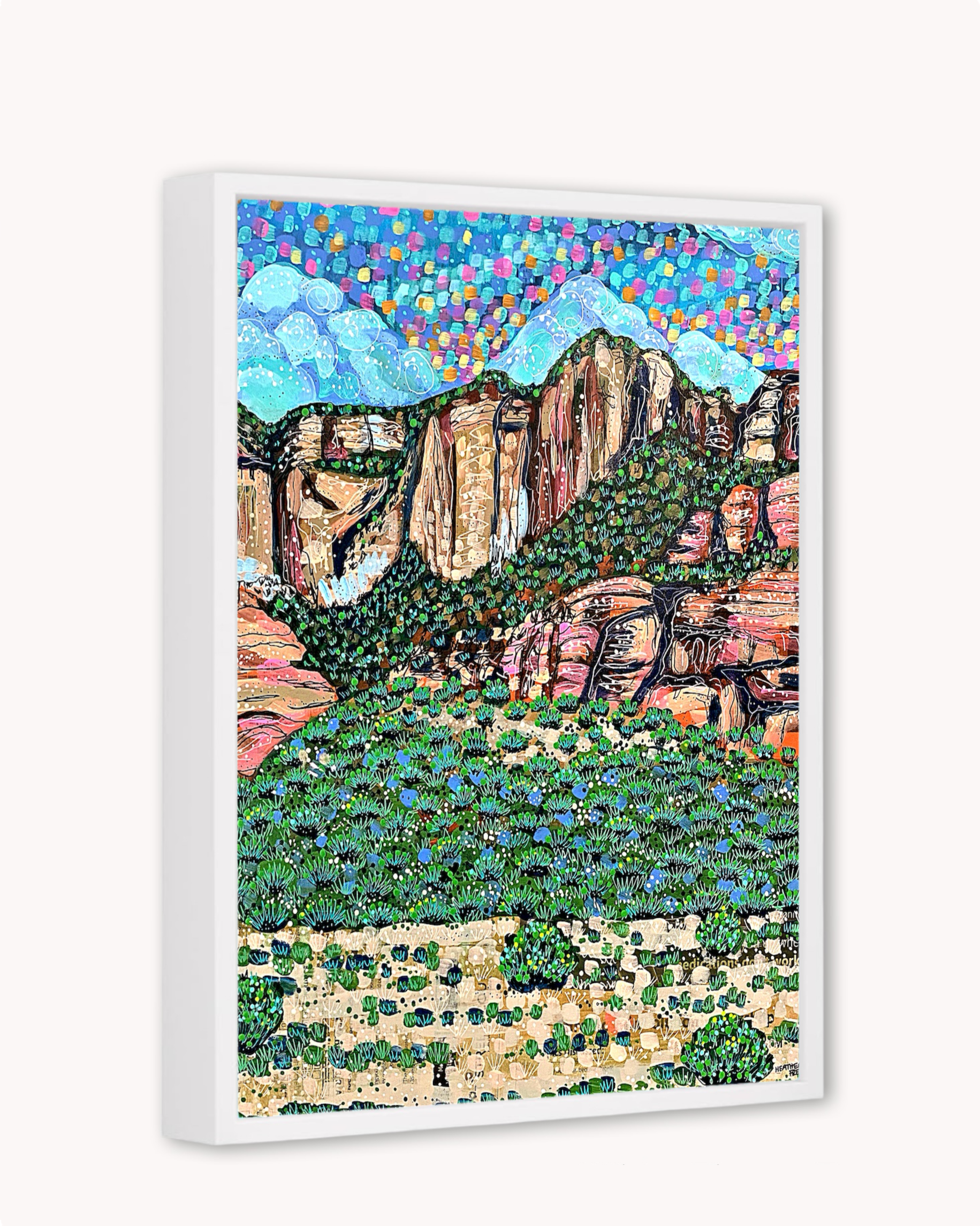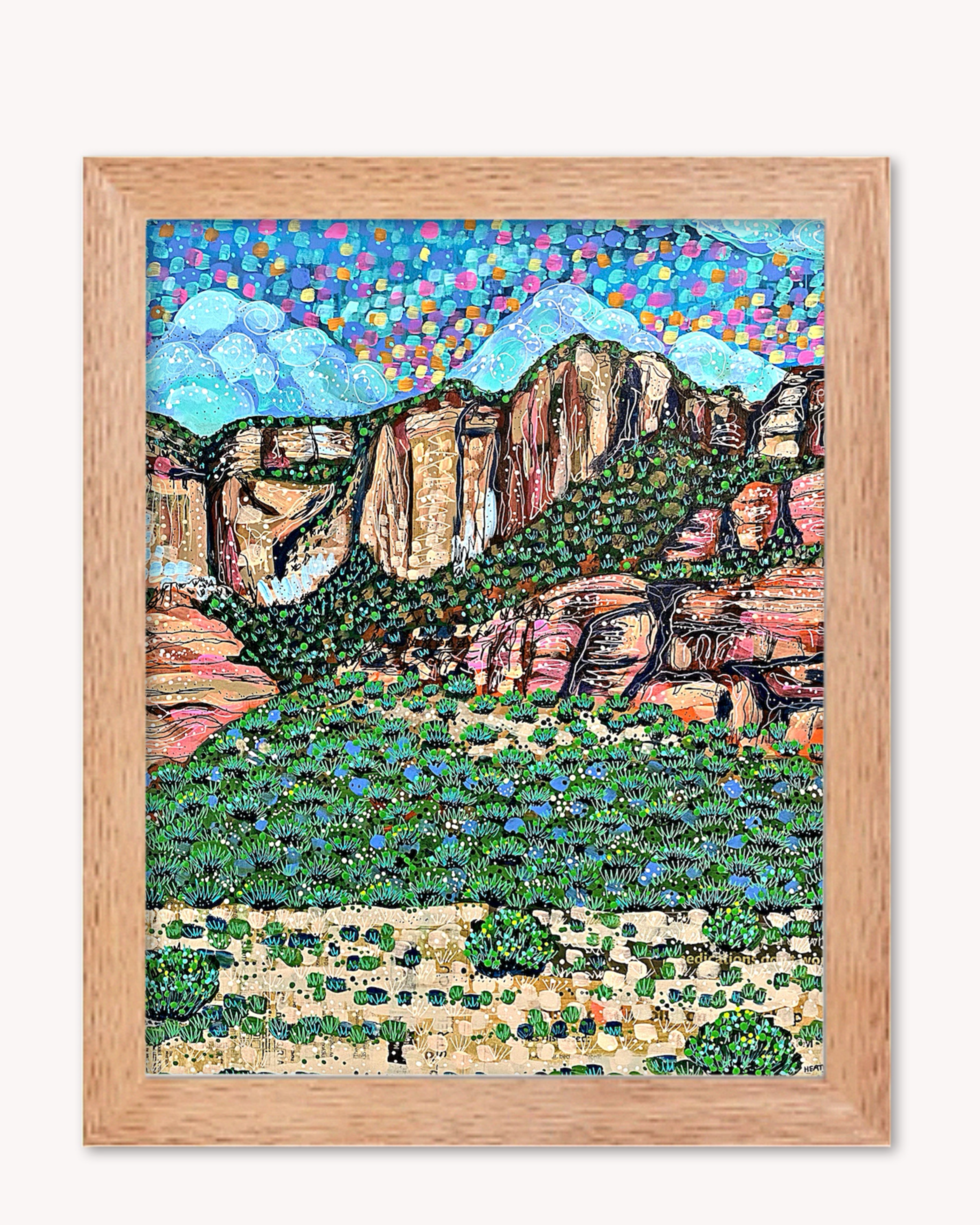 Delightfully dreamy and impossible to forget, these prints are like a soft hug from another world—each one wrapped in Heather Freitas’s signature style: bold, symbolic, and utterly enchanting. With over 1,800 original works sold and adored around the globe, her art has become a coveted escape for collectors and daydreamers alike.