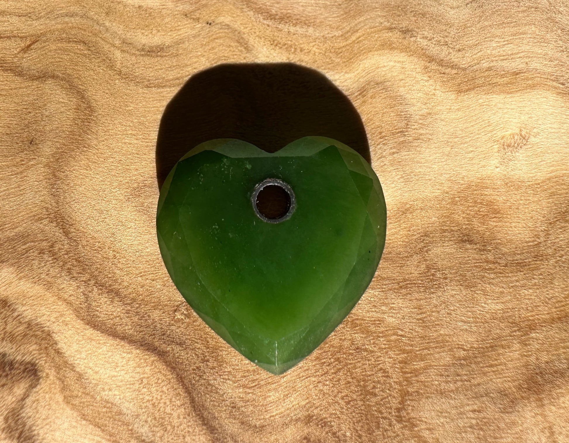 Loose Canadian Jade Faceted Heart, with stainless steel surrounding the hole.