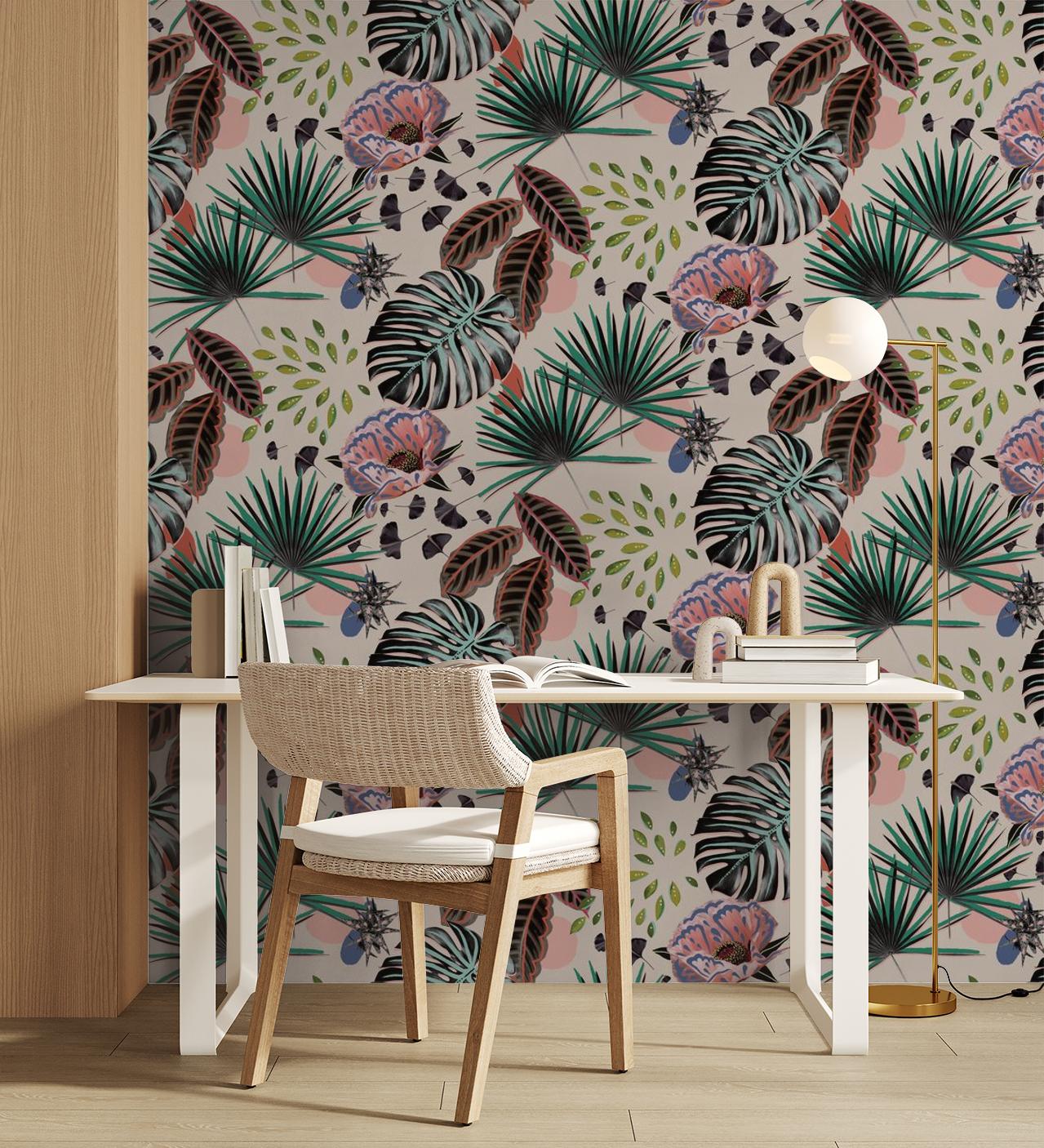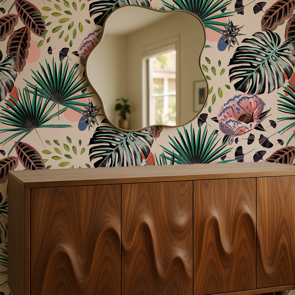 Introduce nature's beauty to your space with Floral Pop Wallpaper. Elegantly illustrated by Samantha Santana, this mural showcases vibrant florals accented with hand-painted details. Enjoy easy installation with peel and stick vinyl or traditional pasted options. And when you're ready for a change, simply remove it.