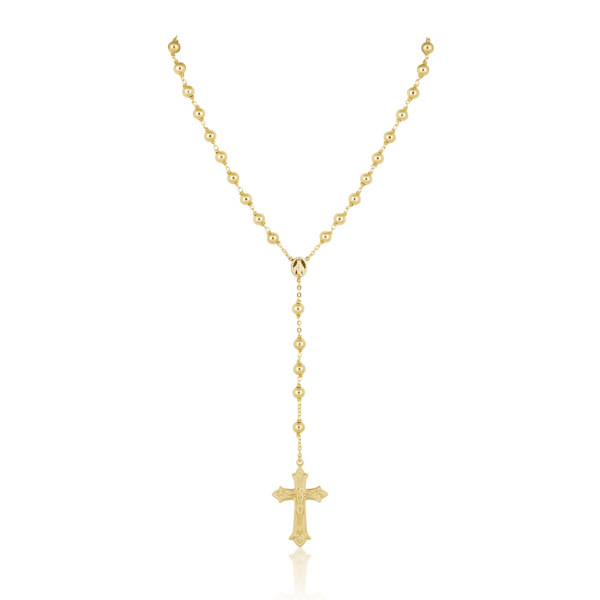 Elevate your style with our Golden Rosary Lariat. The beaded rosary design adds a touch of elegance to any outfit. Perfect for any occasion, this lariat is a must-have piece for any jewelry collection. Empower your look with the Golden Rosary Lariat.