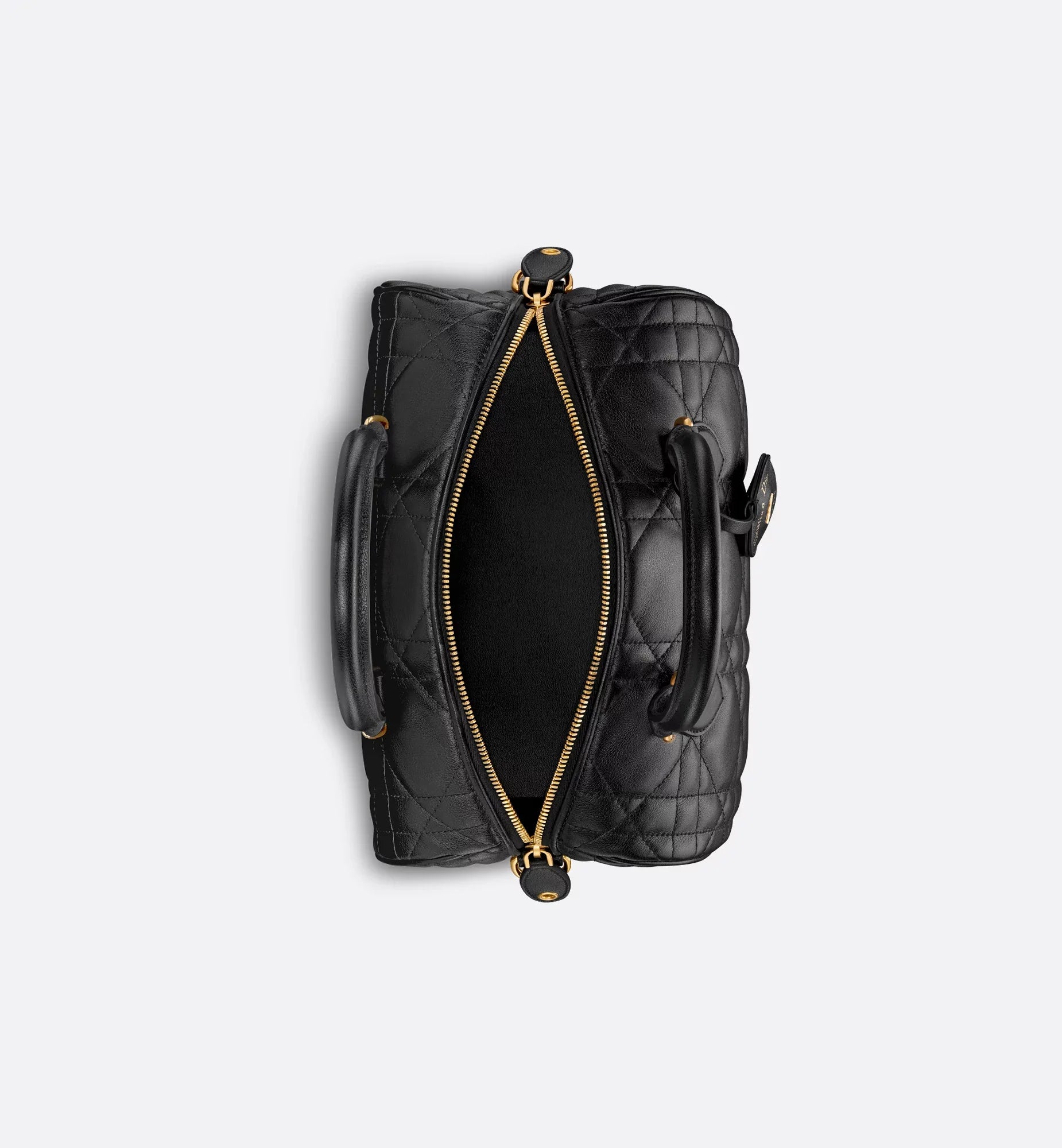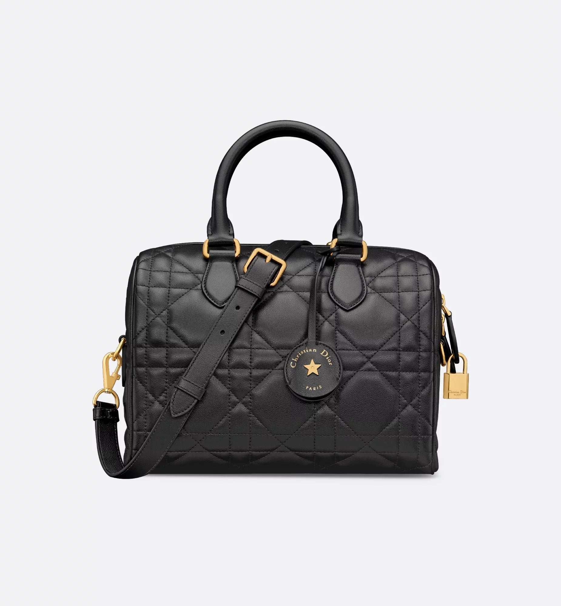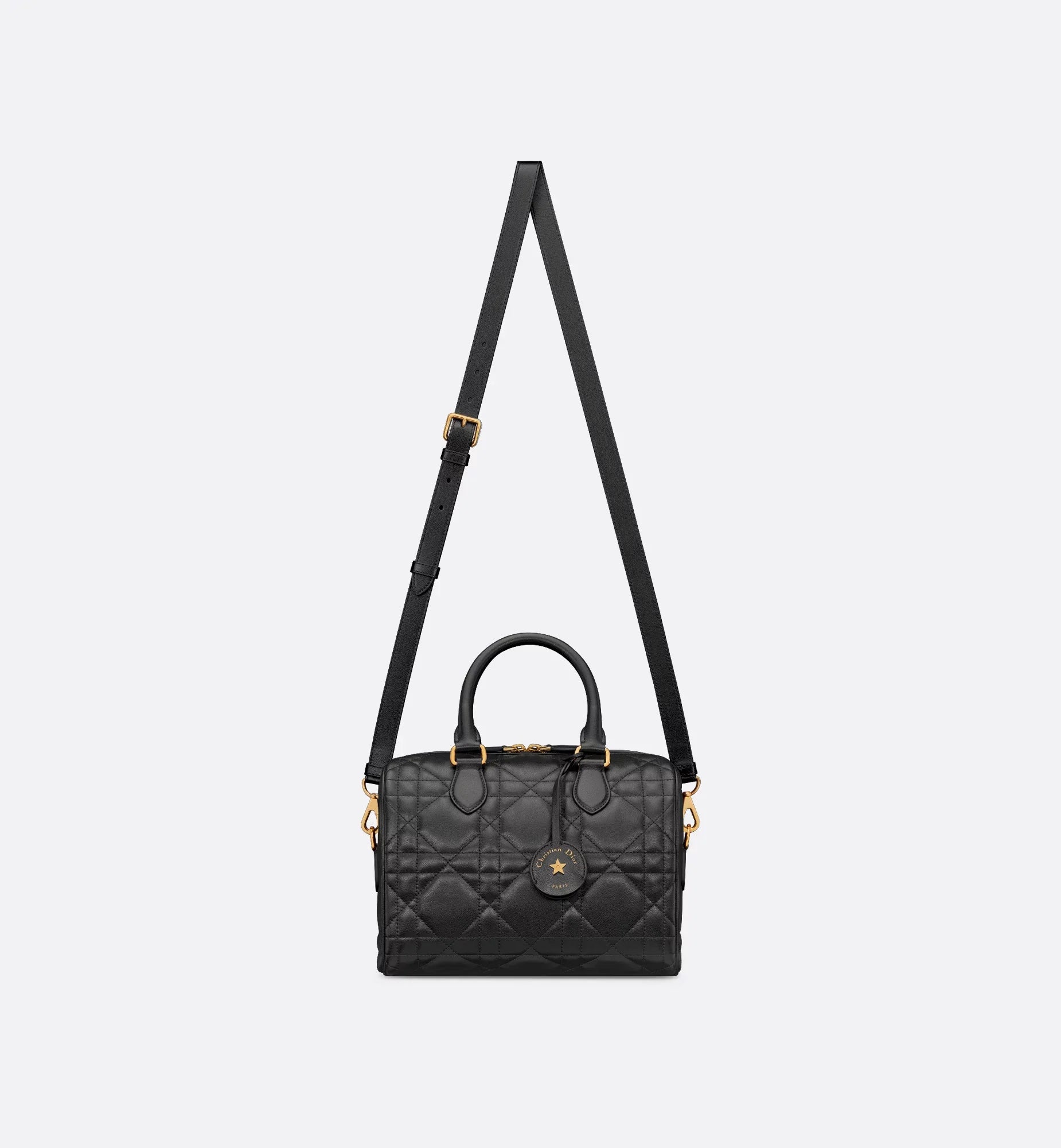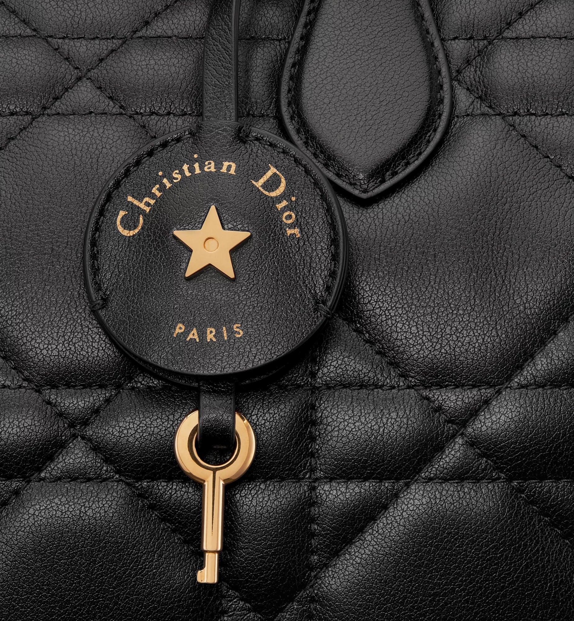 The Groove 25 bag is an elegant and modern creation designed by Maria Grazia Chiuri. Demonstrating the House's savoir-faire, the black calfskin style is elevated by the quilted Macrocannage motif and is distinguished by a leather key holder with the Christian Dior Paris signature and a gold-finish star. The attached key opens the zipper padlock to reveal a spacious compartment with a slip pocket and a zip pocket to hold all the essentials. Featuring leather top handles and an adjustable, removable strap, the bag can be carried by hand, worn over the shoulder or crossbody as an ideal daily companion.