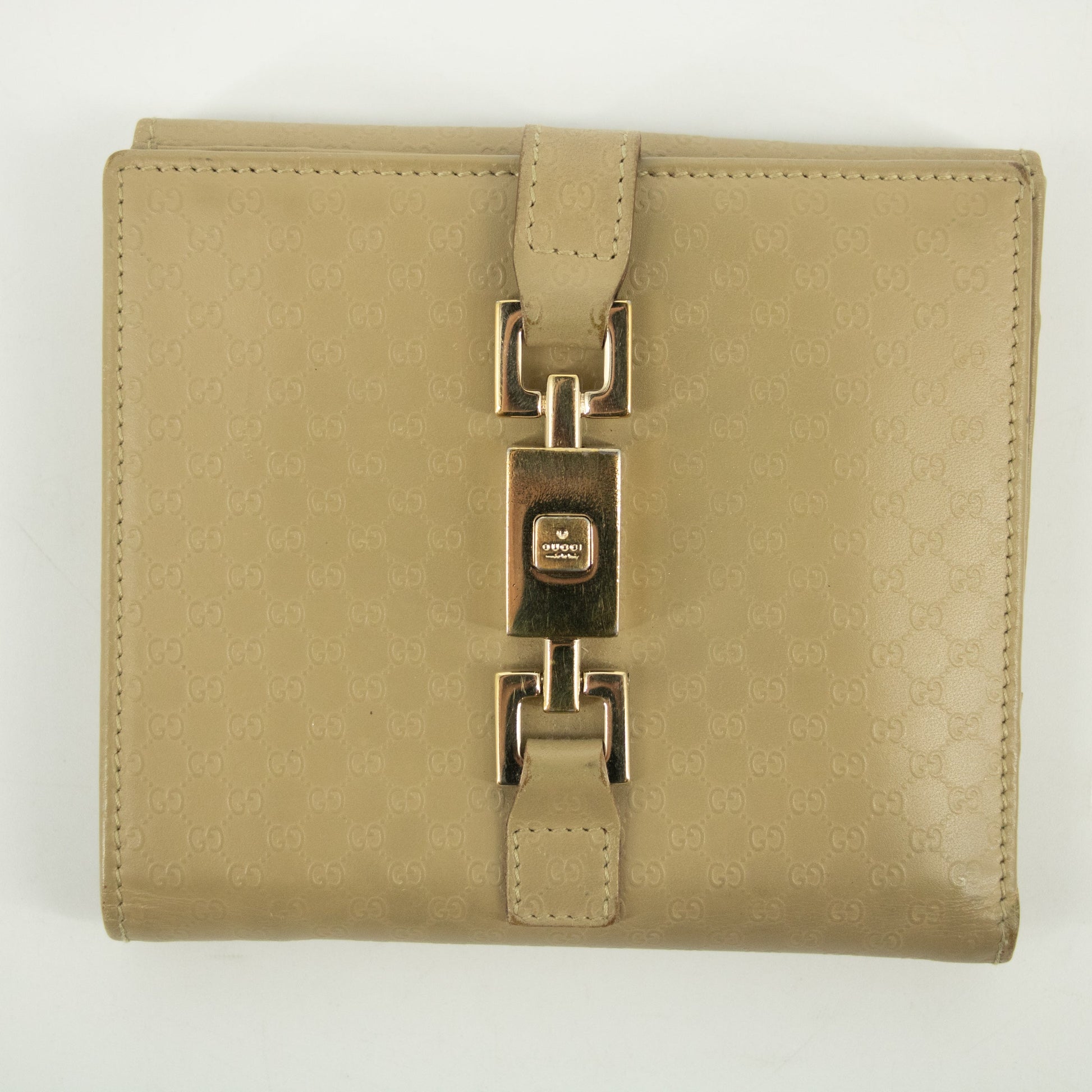 - Gucci Beige Jackie Micro Guccisima Leather Compact Wallet -SKU #2390