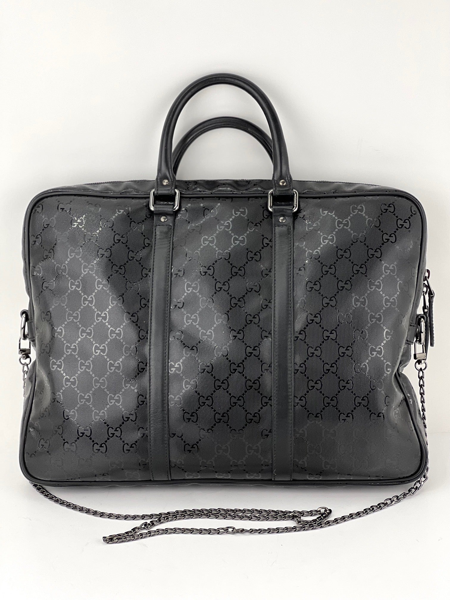 Gucci Briefcase GG Imprime Coated Canvas Black Monogram Business Bag Preowned