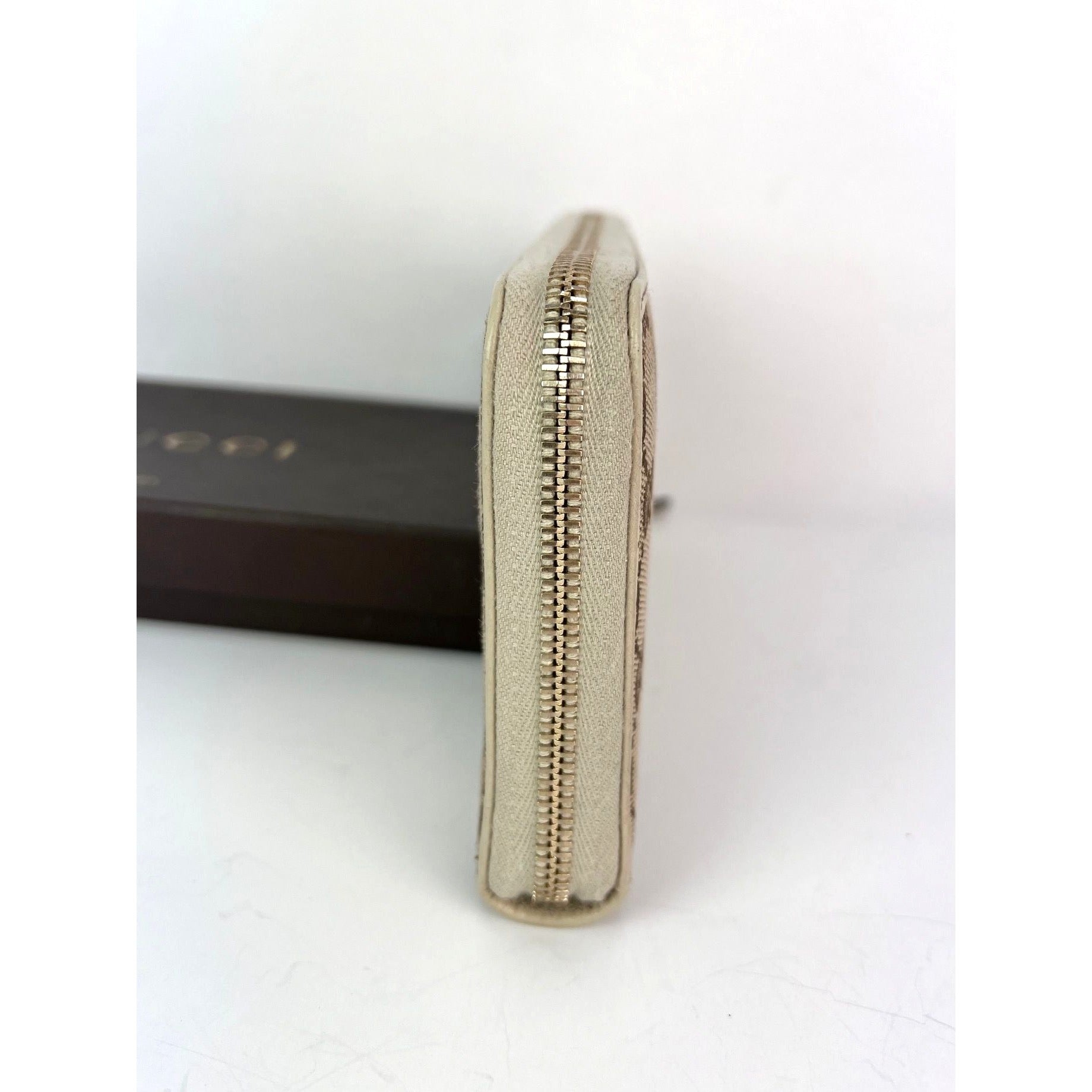 Gucci GG Logo Beige Zip Around Canvas Long Wallet