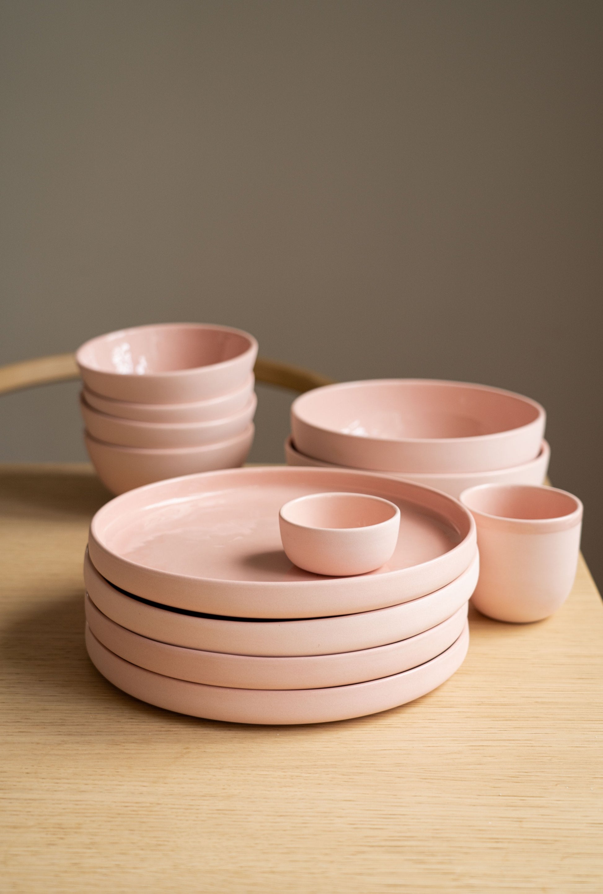 Handmade High-sided Porcelain Dinner Plate. Powder Pink