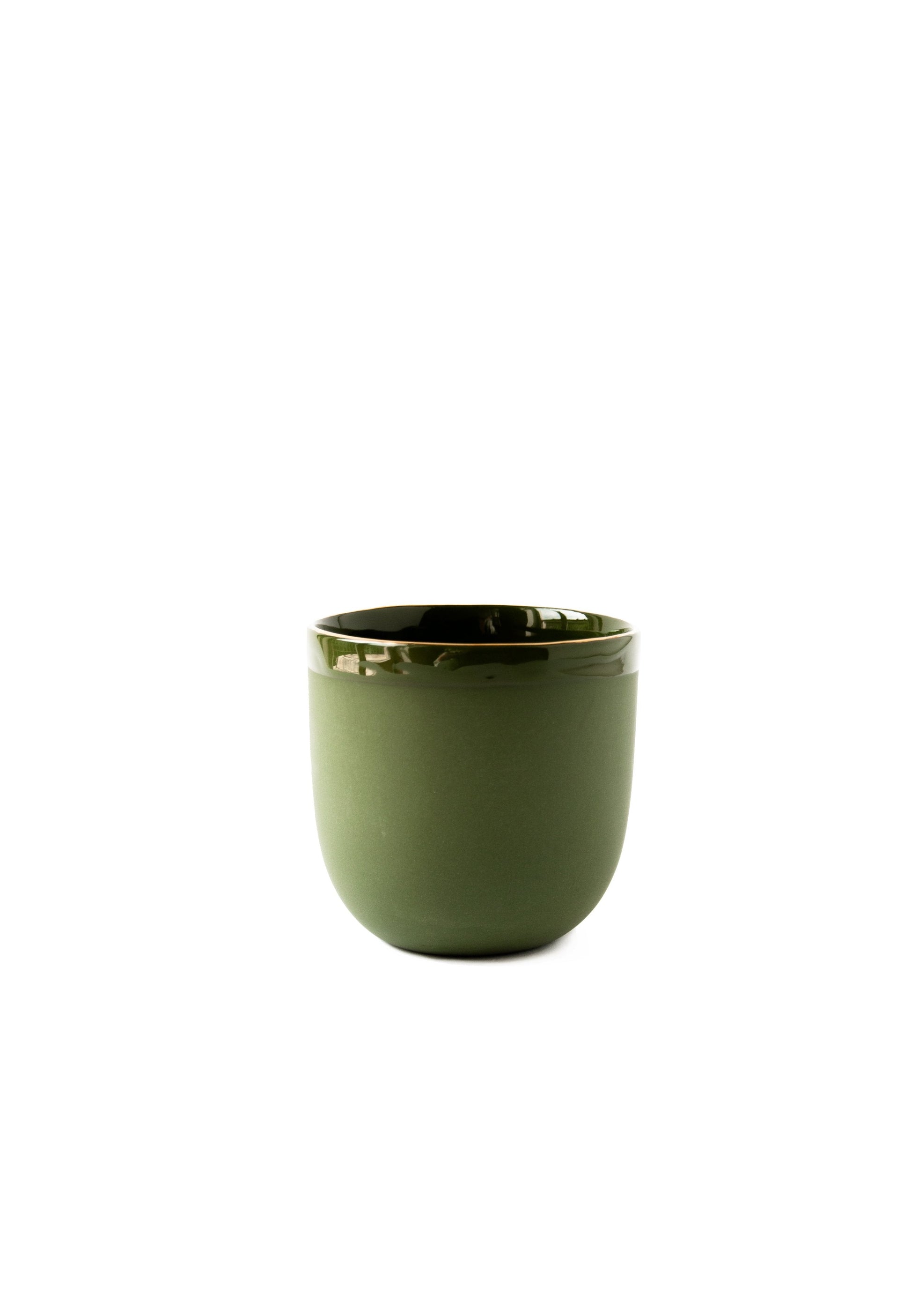 Handmade Porcelain Coffee Cup with Gold Rim. Green