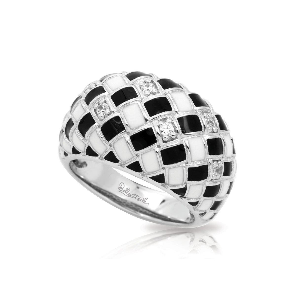 Description: Hand-painted Italian enamel with white stones set into rhodium-plated, nickel allergy-free, 925 sterling silver.