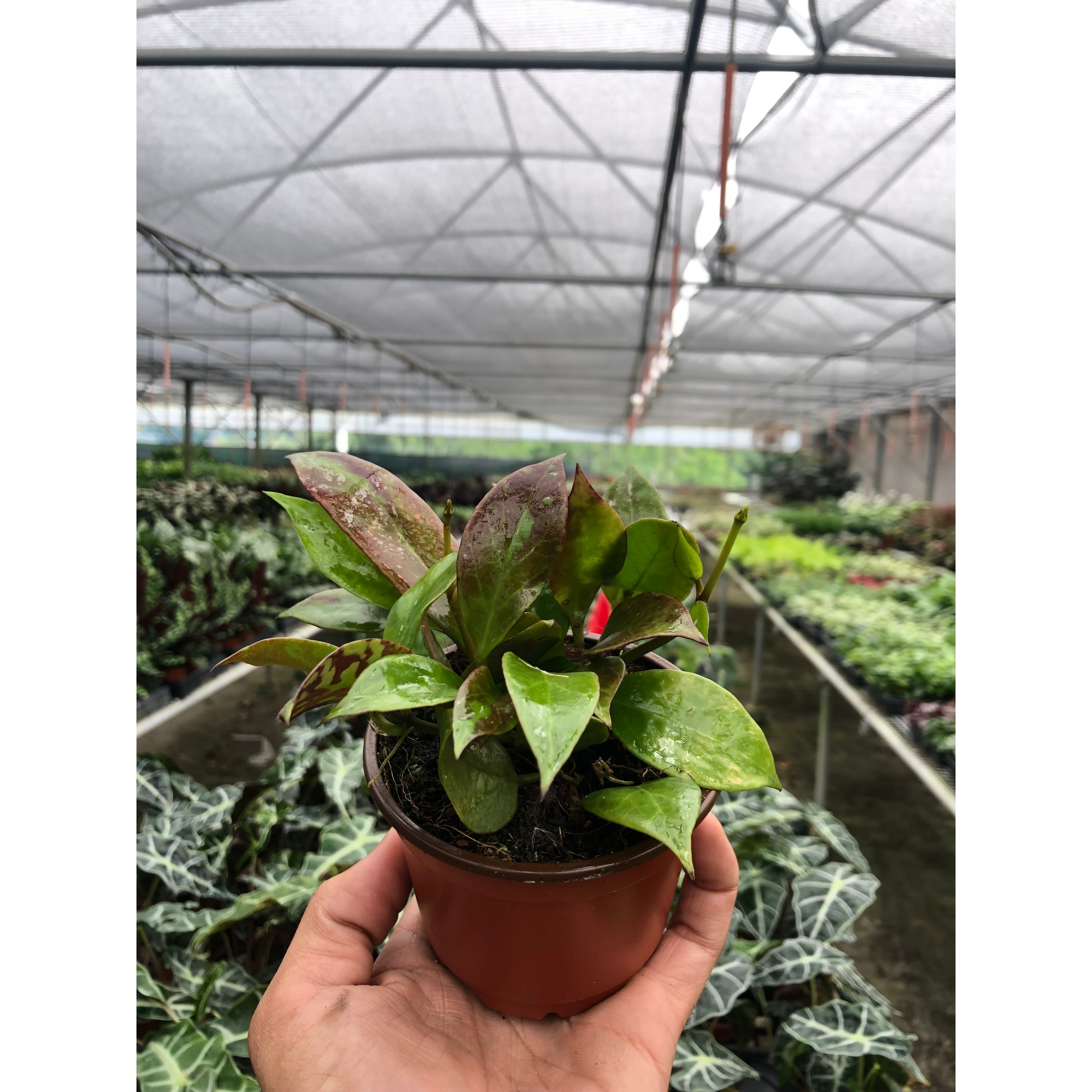 - Description: Hoya Sunrise is a beautiful plant with teardrop-shaped dark green leaves and red veins. Grow this option that works great in hanging baskets in bright indirect light to produce more vivid color.