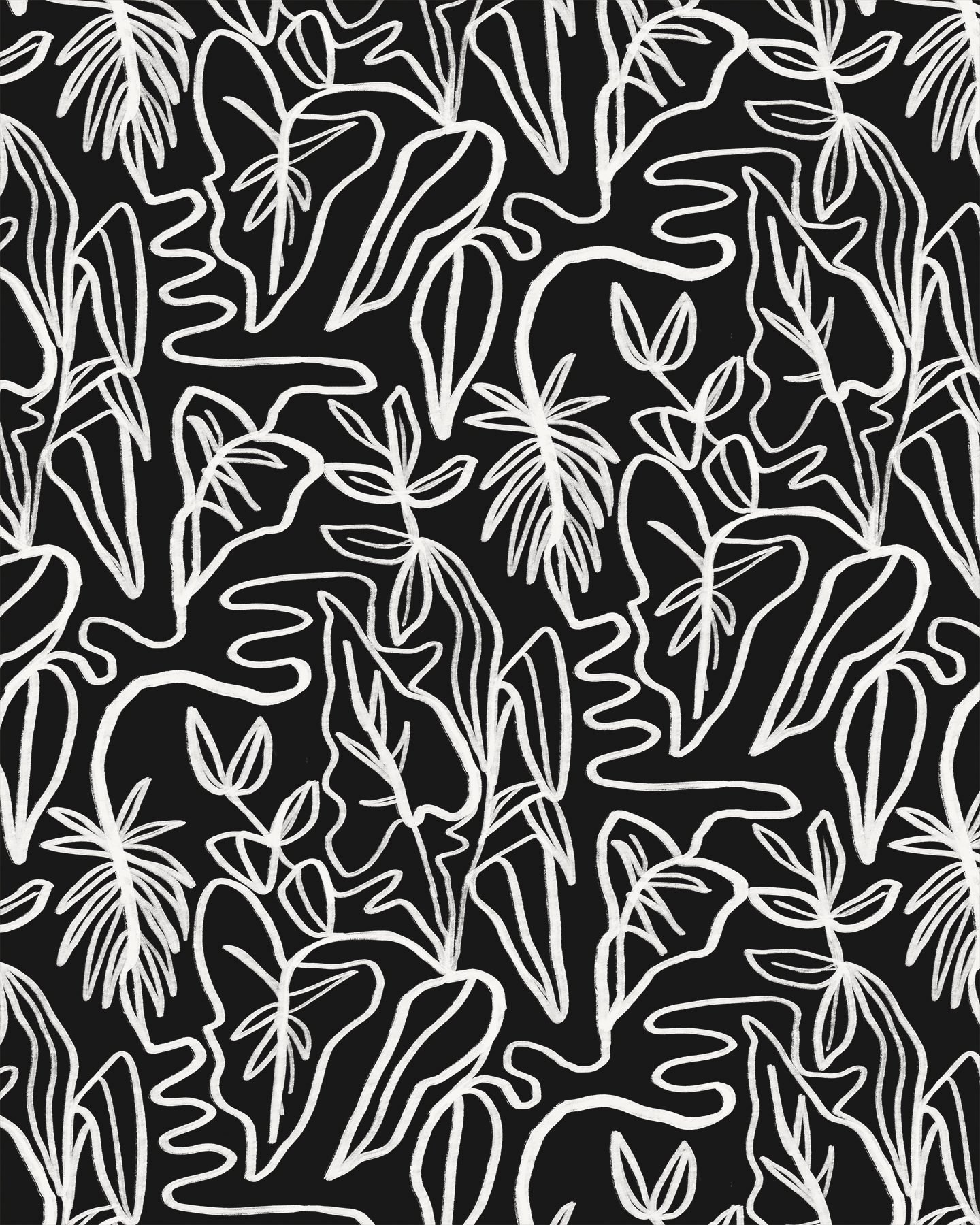 Revamp your living space with Inked Foliage Wallpaper in black and white. This stunning abstract botanical design, by Samantha Santana, adds an artistic touch to any room. With both peel and stick and traditional options, installation is a breeze. And when you're ready for a change, it's easy to remove. Transform your home today!