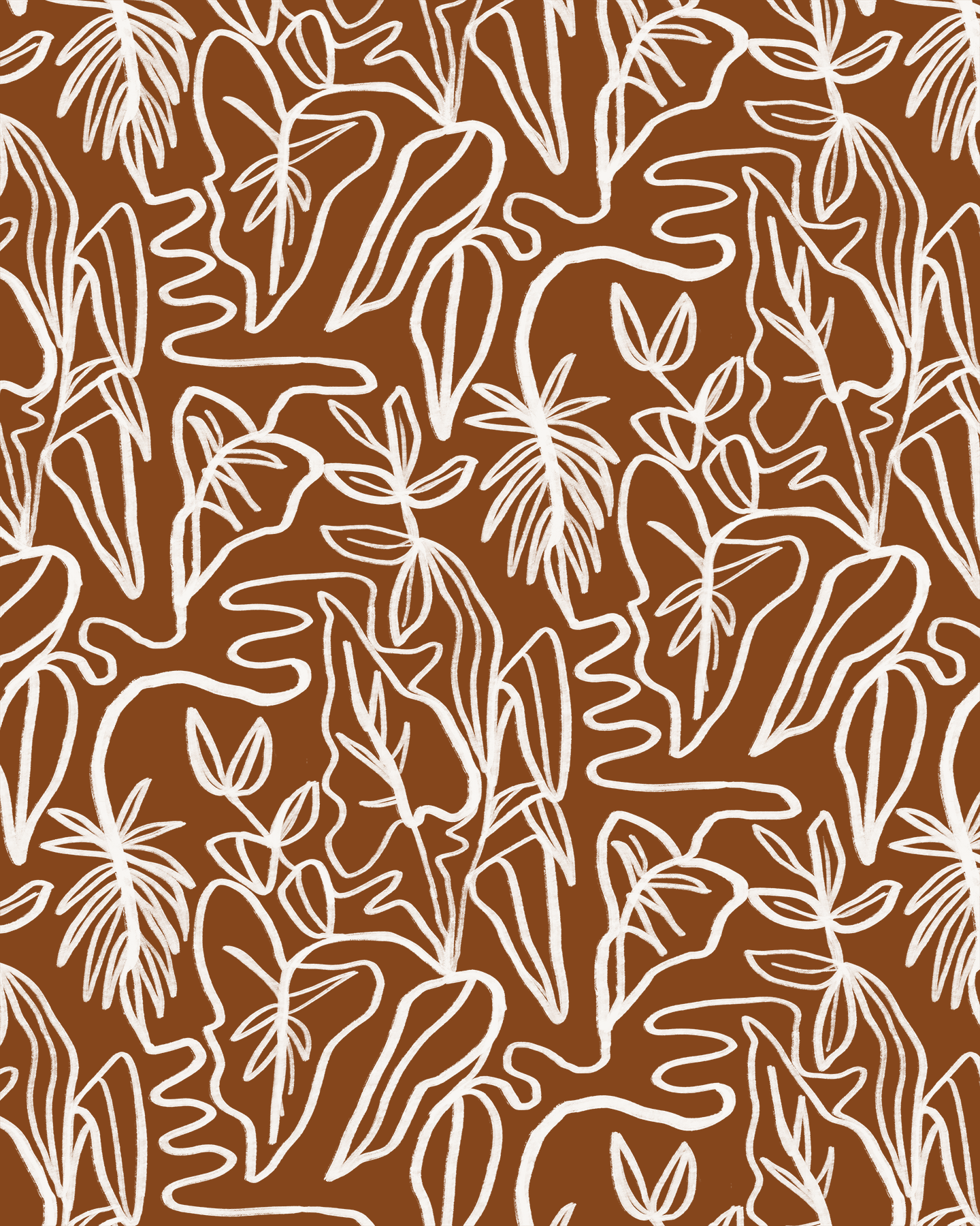 Revamp your living space with Inked Foliage Wallpaper in rust and white. This stunning abstract botanical design, by Samantha Santana, adds an artistic touch to any room. With both peel and stick and traditional options, installation is a breeze. And when you're ready for a change, it's easy to remove. Transform your home today!