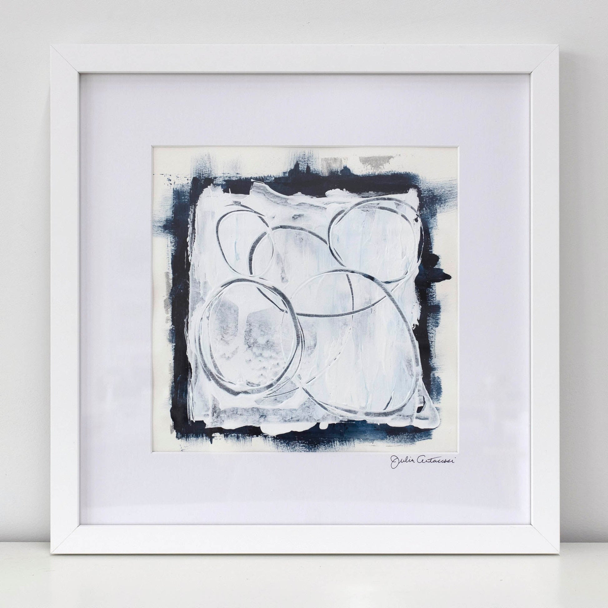This original painting was created on Strathmore 300gsm acid-free paper. It’s matted and finished in a white frame. Signed in the lower right corner and on the back. Pairs beautifully with “Innuendo No. 9”.