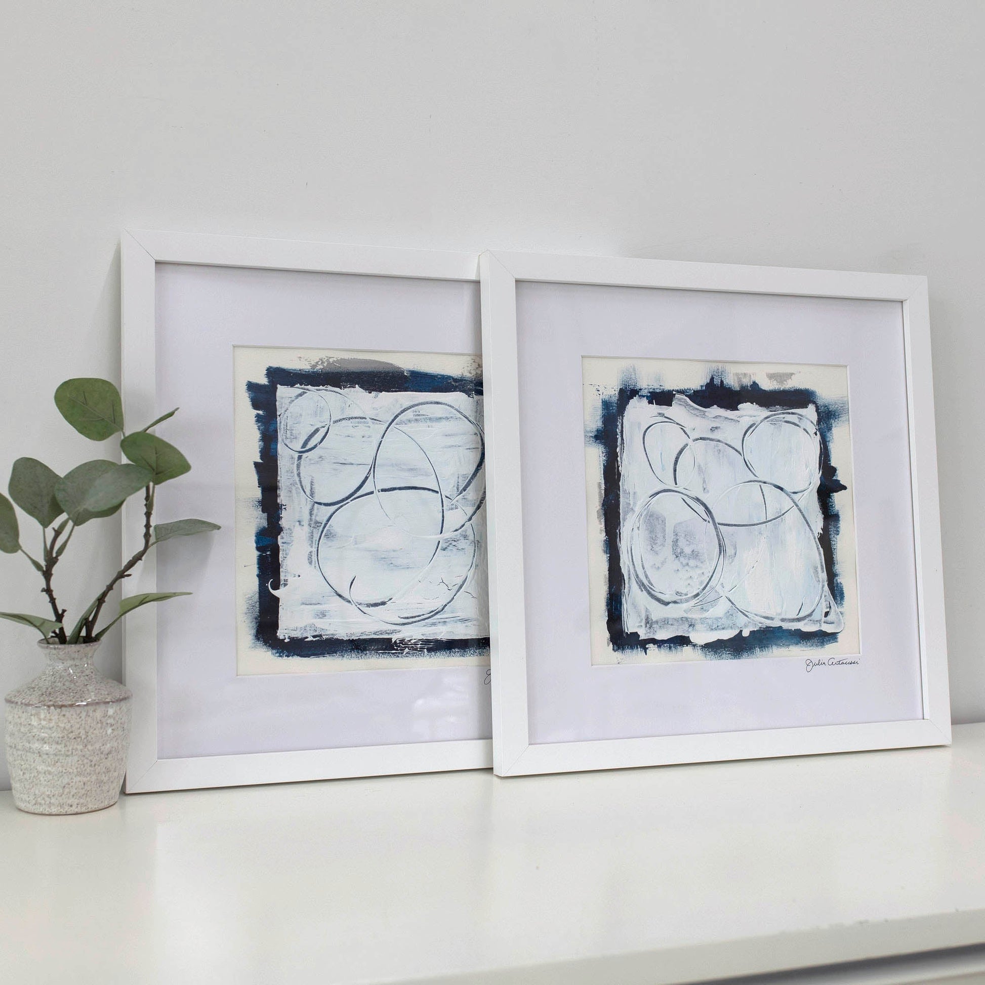 This series uses texture, layering and gestural mark making to create interest and movement. Possible hints to figurative form combined with a limited color palette intensifies the suggestion of something more while allusive on delivering just that. The intrigue of where you may end up if following the circular and spiraling paths, builds when layering more than one work from this series in a grouping or gallery wall.