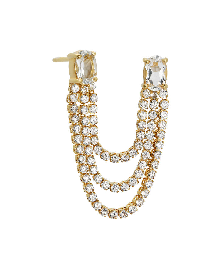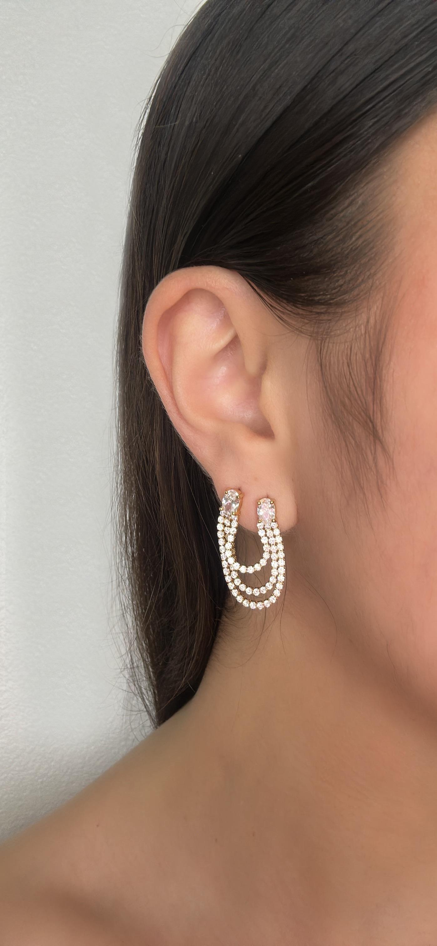 Expertly crafted with hypoallergenic 18k goldfill, these stud earrings feature a unique wrap design adorned with shimmering white CZ stones. The multi-round CZs add elegant charm, while the size L butterfly backing ensures a secure fit. Make a statement with these 37.5mm earrings.