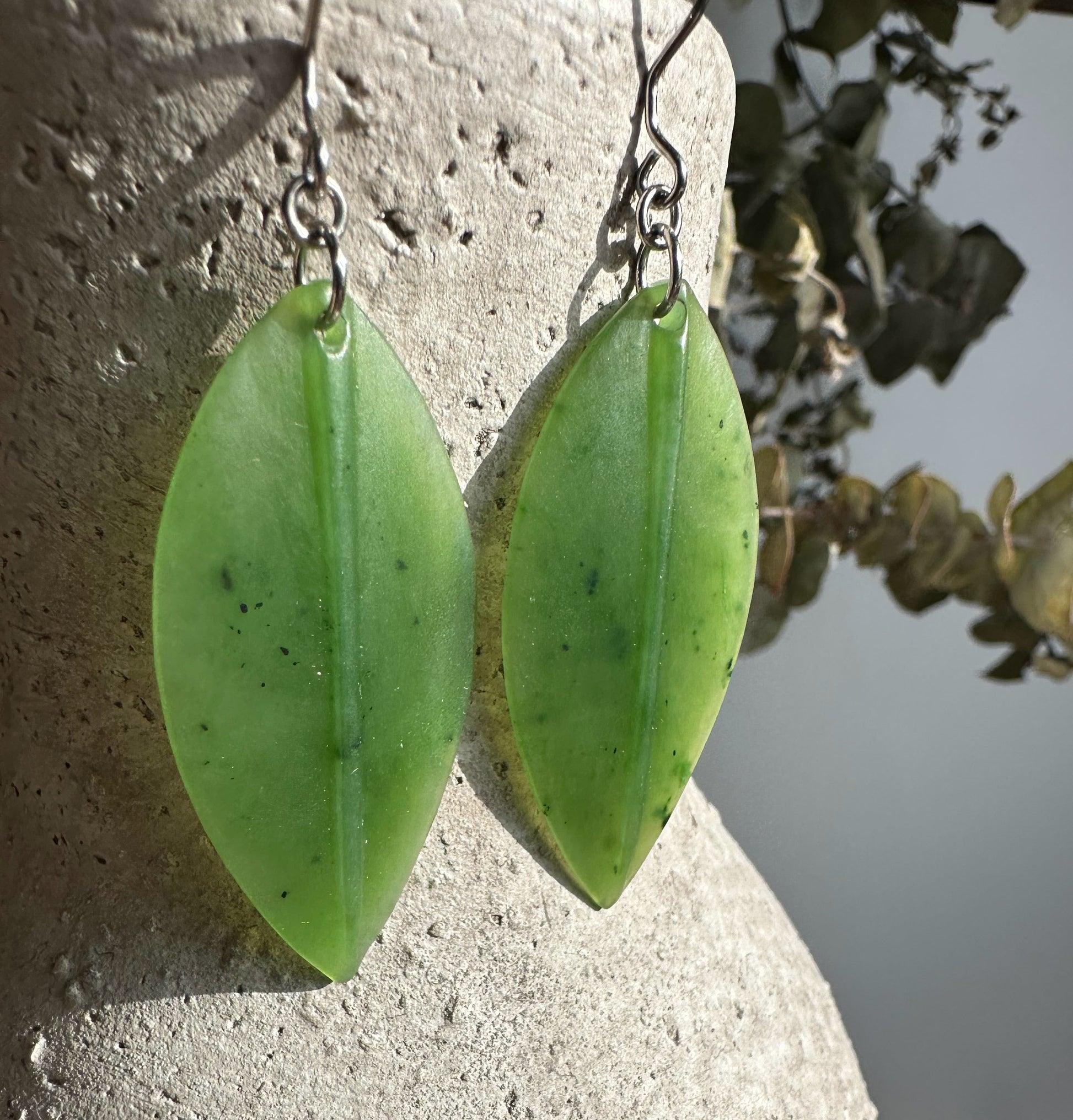 Canadian Nephrite Jade Leaf Earrings
