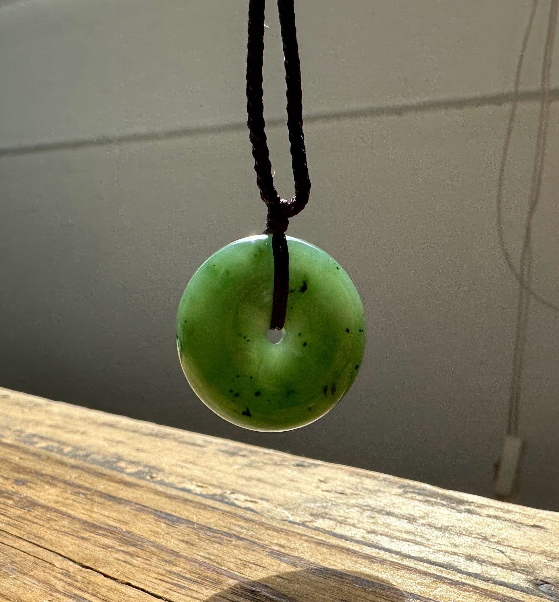 Jade PI (Donut) on Nylon Brown Cord - 25mm