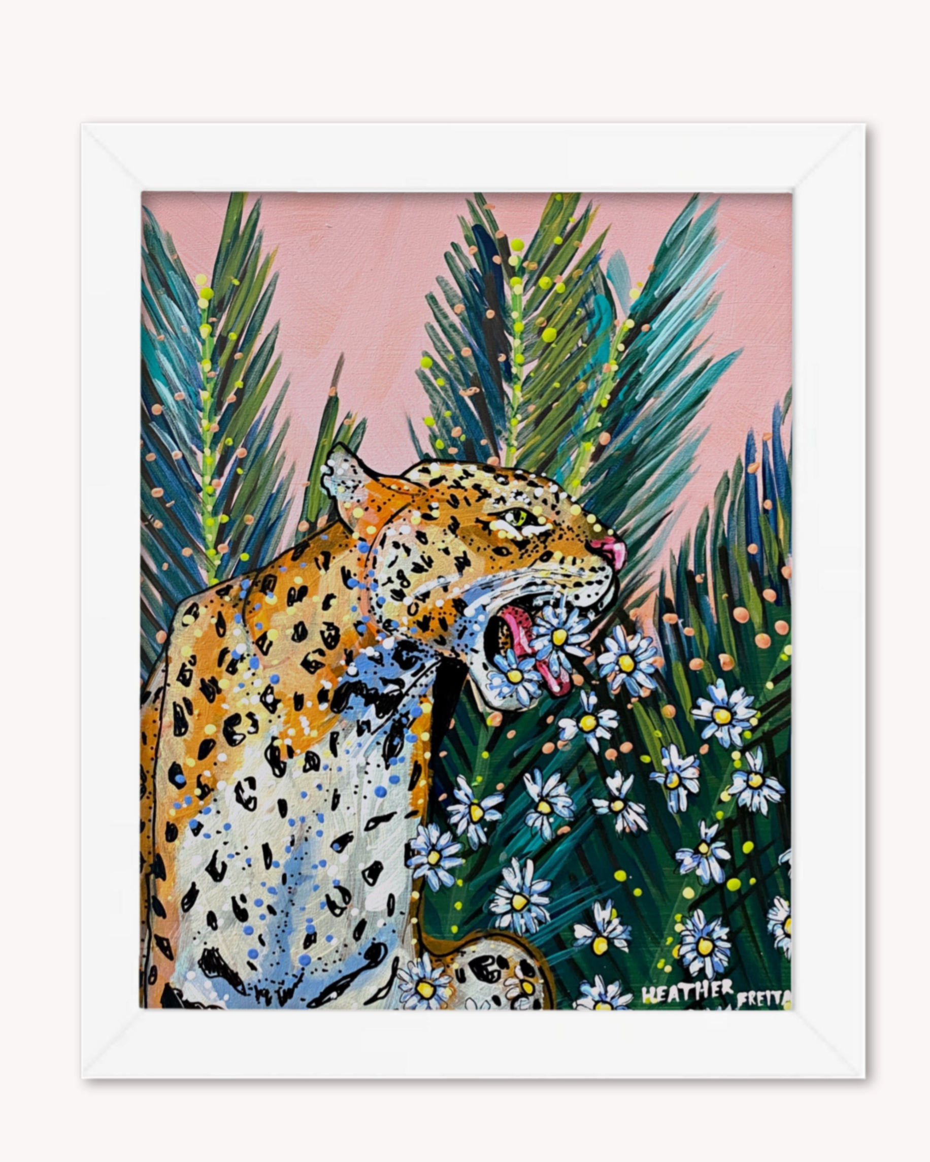 Delightfully dreamy and impossible to forget, these prints are like a soft hug from another world—each one wrapped in Heather Freitas’s signature style: bold, symbolic, and utterly enchanting. With over 1,800 original works sold and adored around the globe, her art has become a coveted escape for collectors and daydreamers alike.
