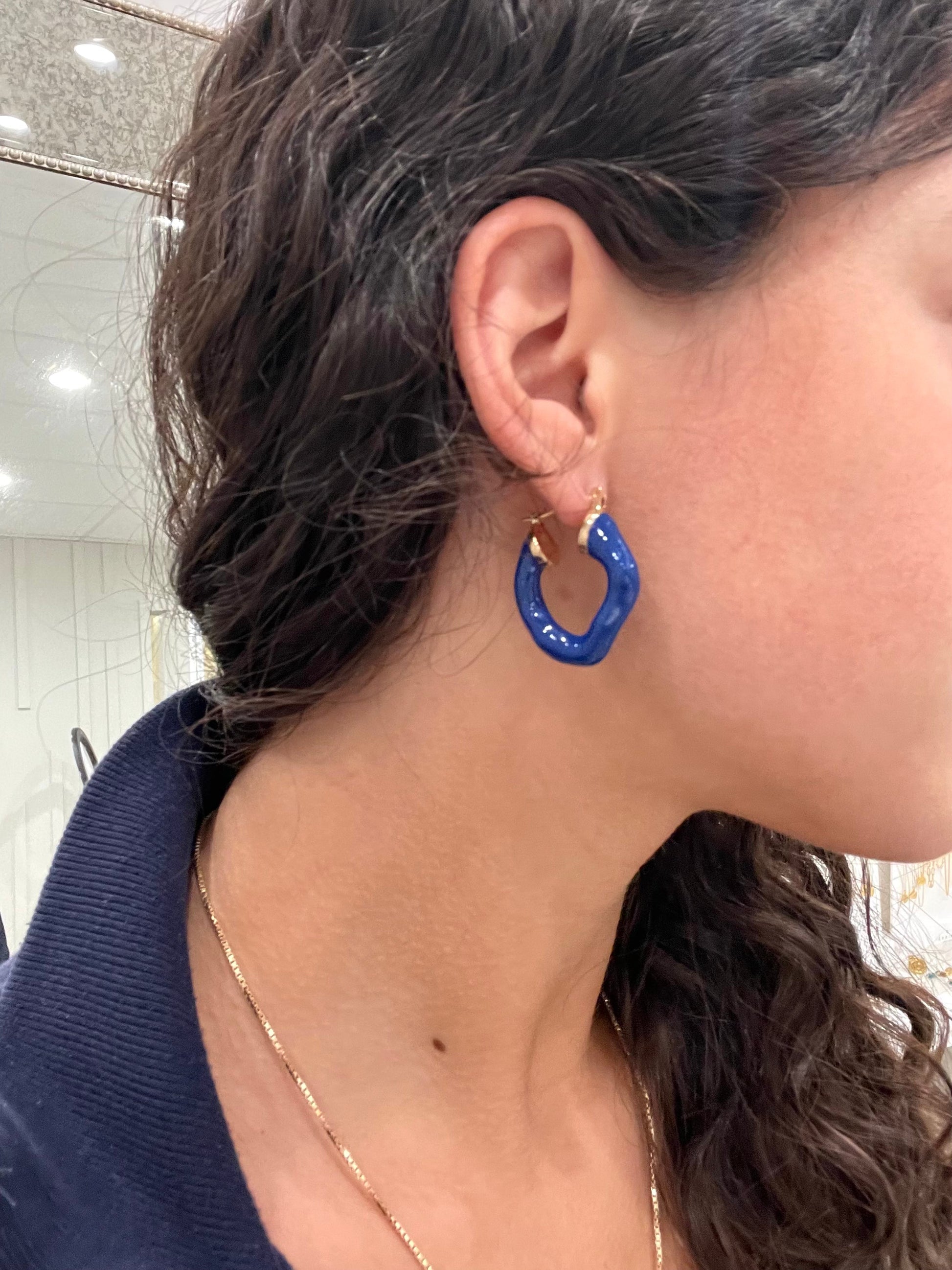 Amplify your earring collection with the Jarol Abstract Hoop. This unique stunner features a perfectly imperfect hoop in a beautiful royal blue.
